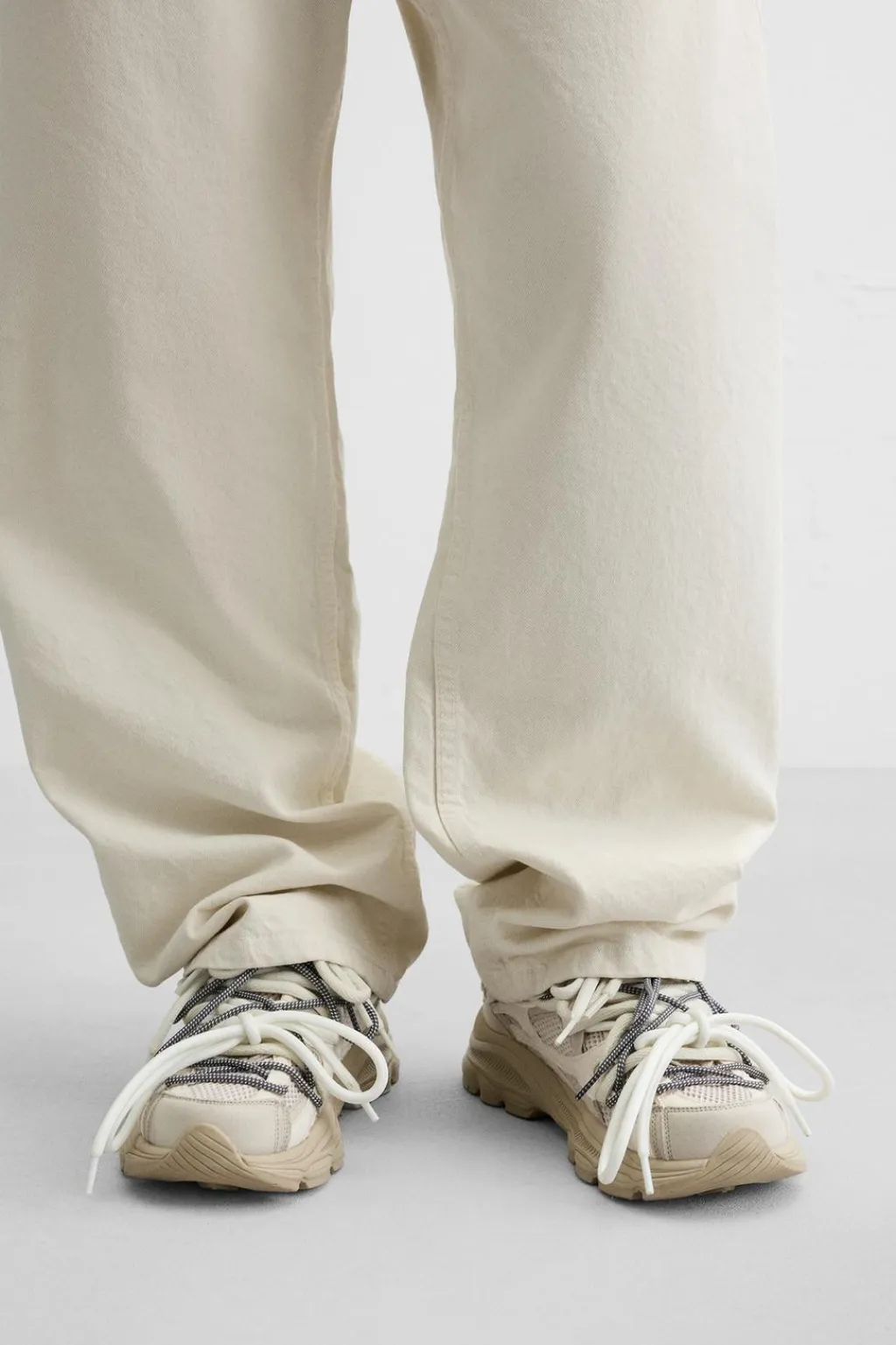 Zapatilla deportiva. Parte superior fabricada en combinación de piezas y materiales. Detalle multicordones. Suela con volumen