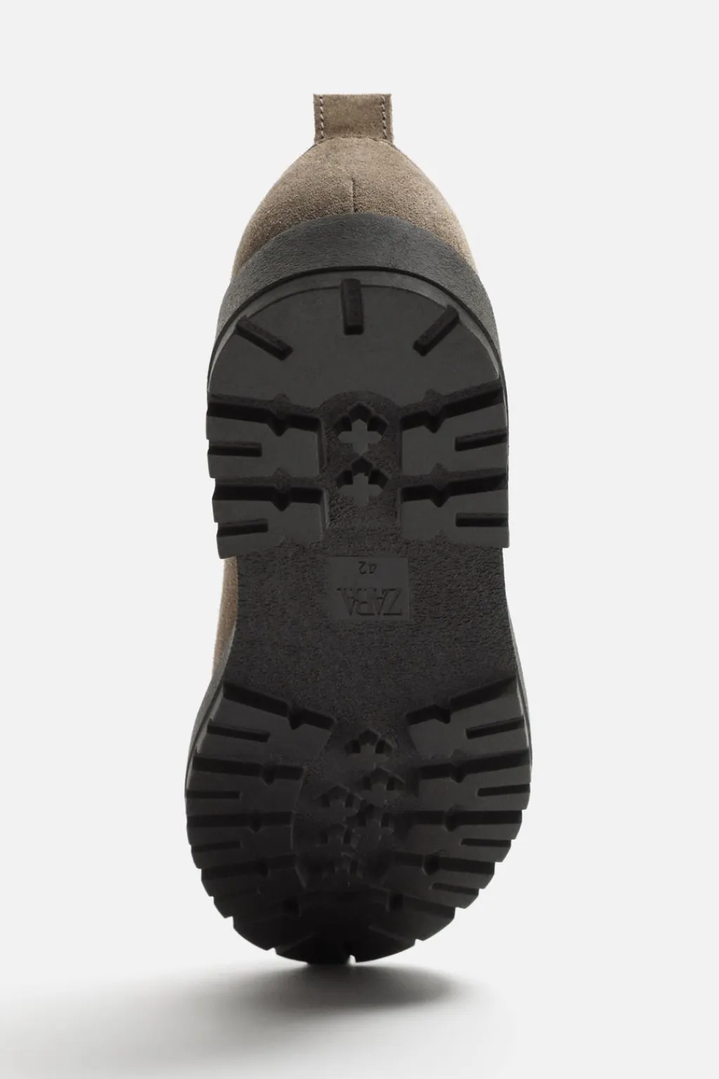 Zapato con detalle de bordón. Parte superior fabricada en piel con acabado serraje. Cordonera con dos pasados. Tirador trasero para facilitar el calce. Suela dentada.