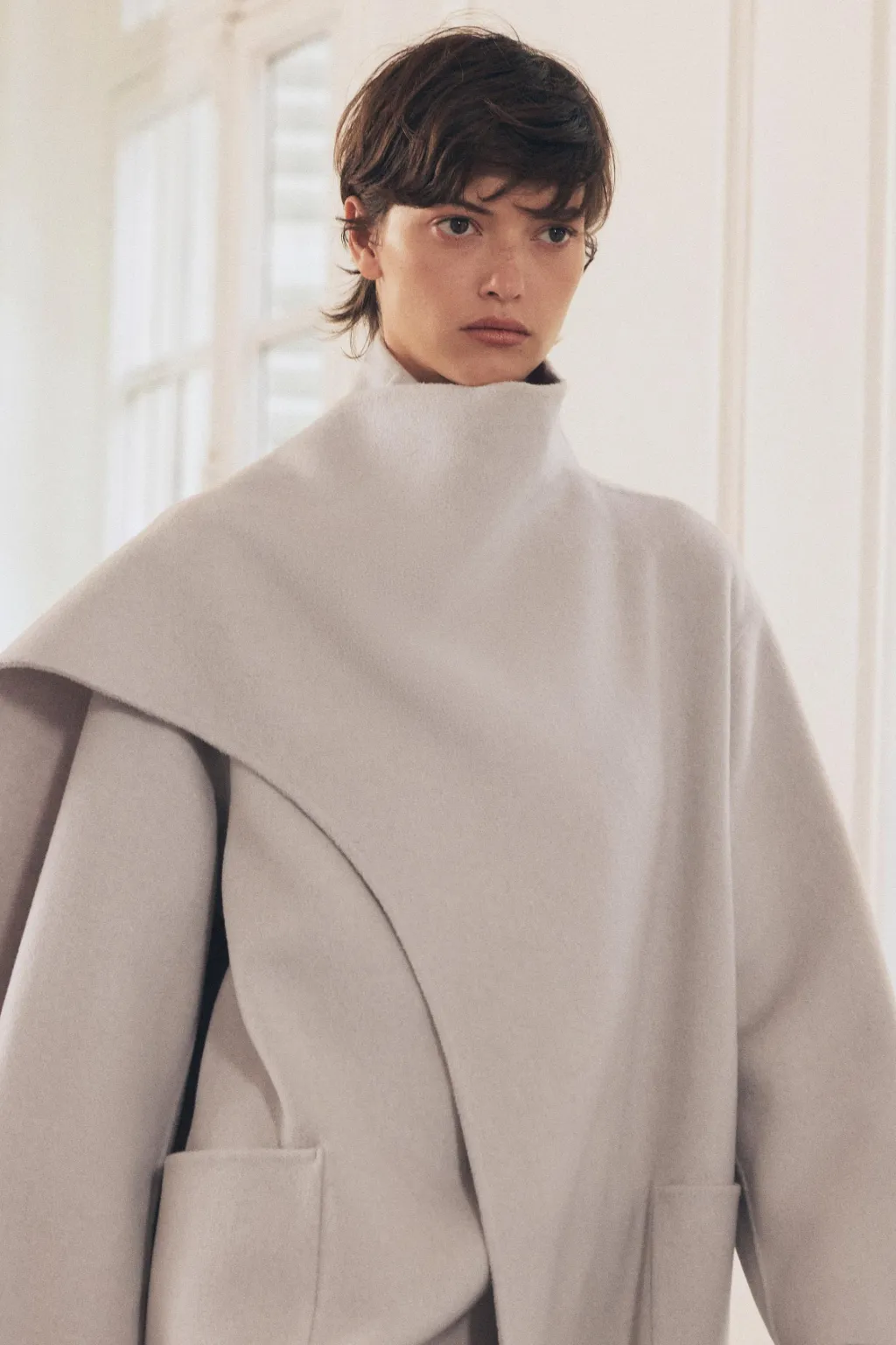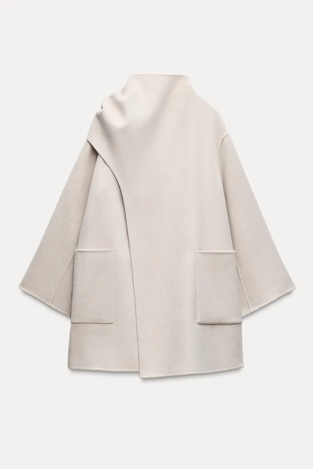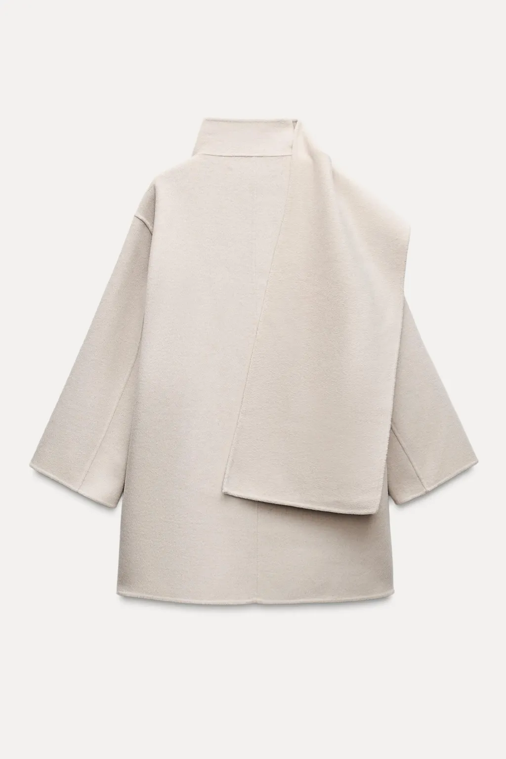 Abrigo corto confeccionado con lana. Cuello subido con bufanda. Manga larga. Bolsillos de plastrón en delantero.