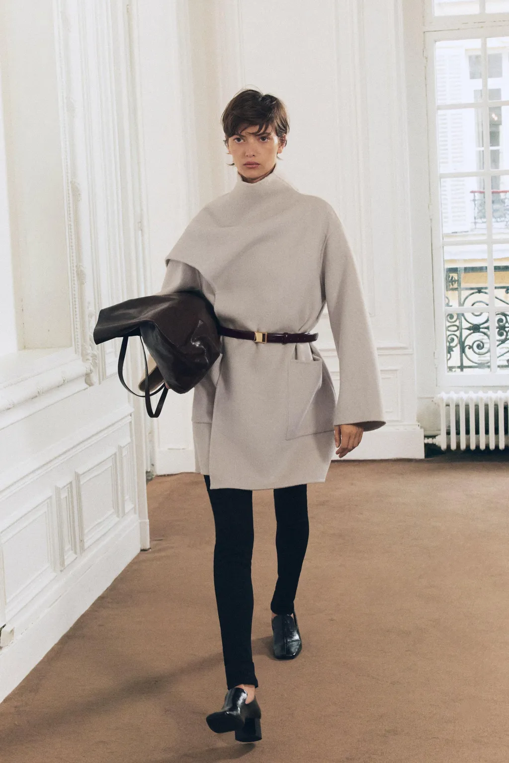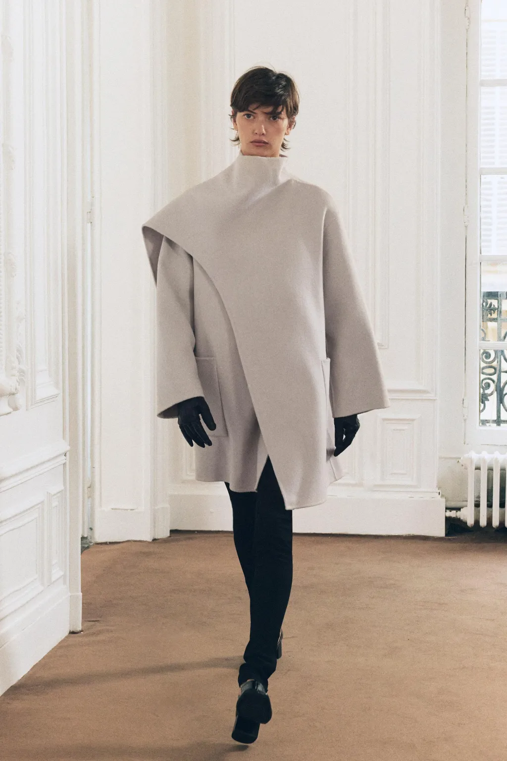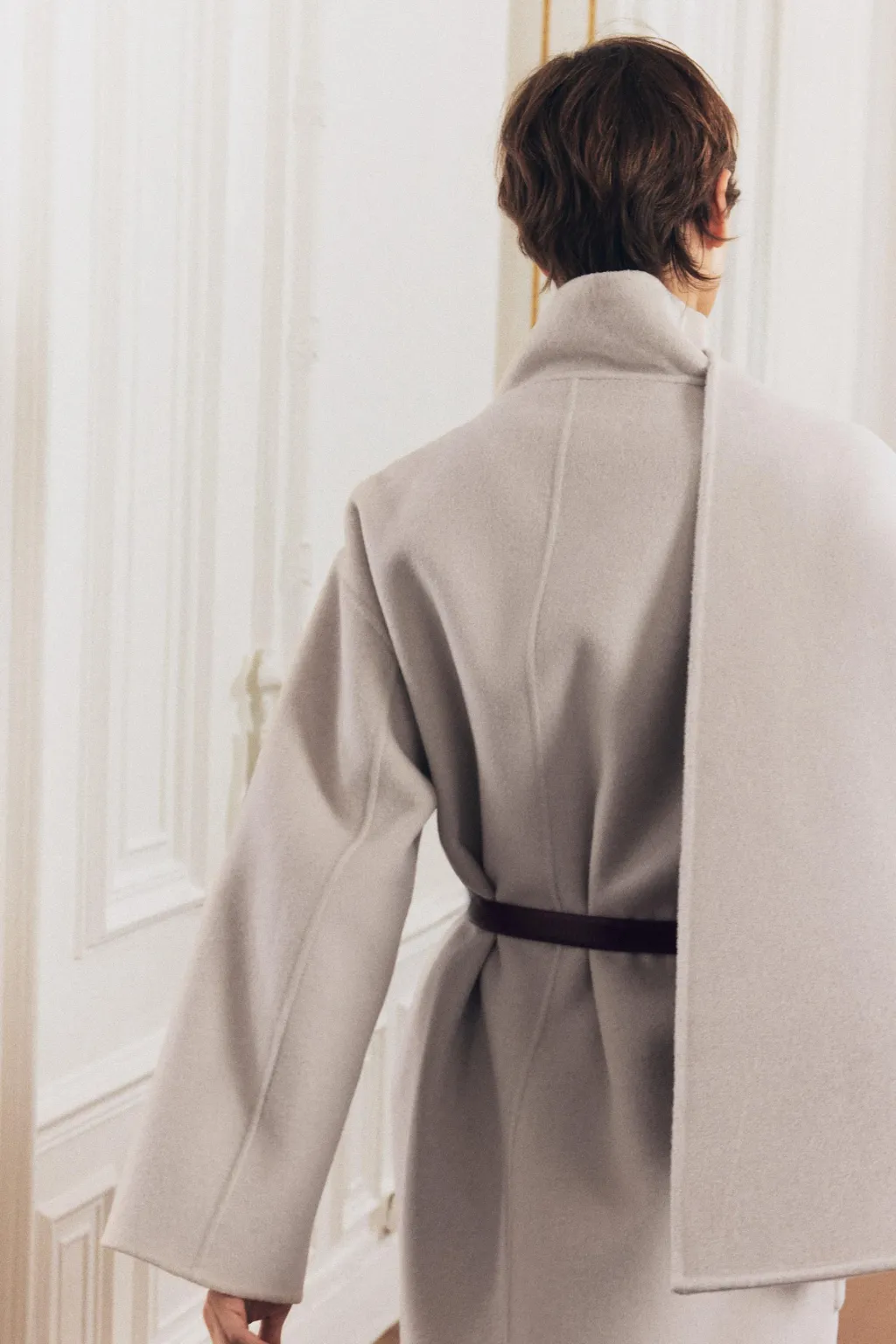 Abrigo corto confeccionado con lana. Cuello subido con bufanda. Manga larga. Bolsillos de plastrón en delantero.