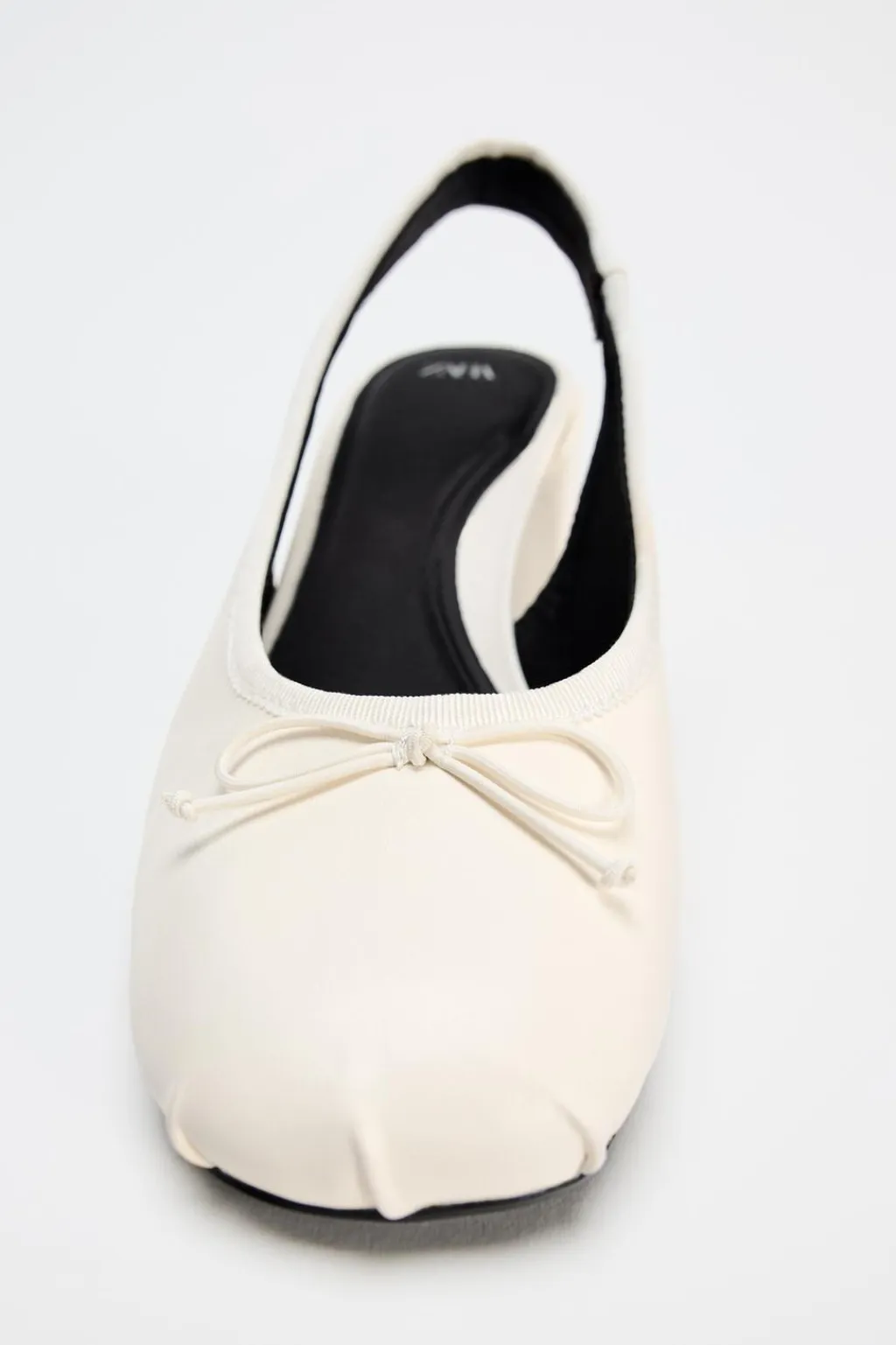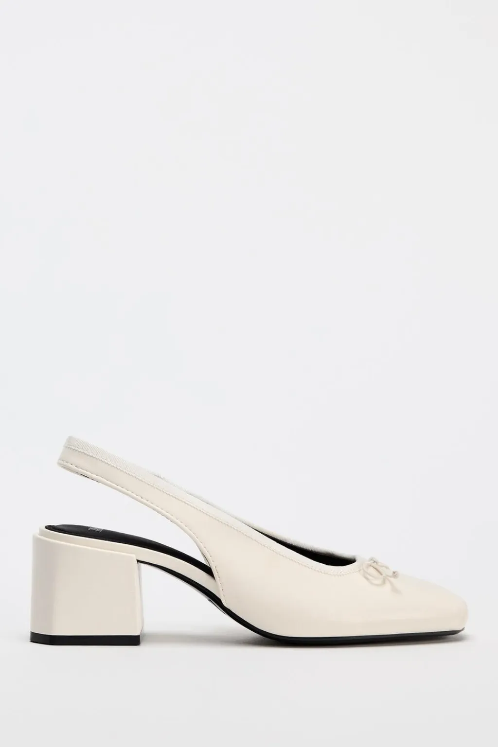 Zapato destalonado con tacón. Detalle de lazo en la parte delantera. Acabado en punta redonda. Tira trasera ajustable