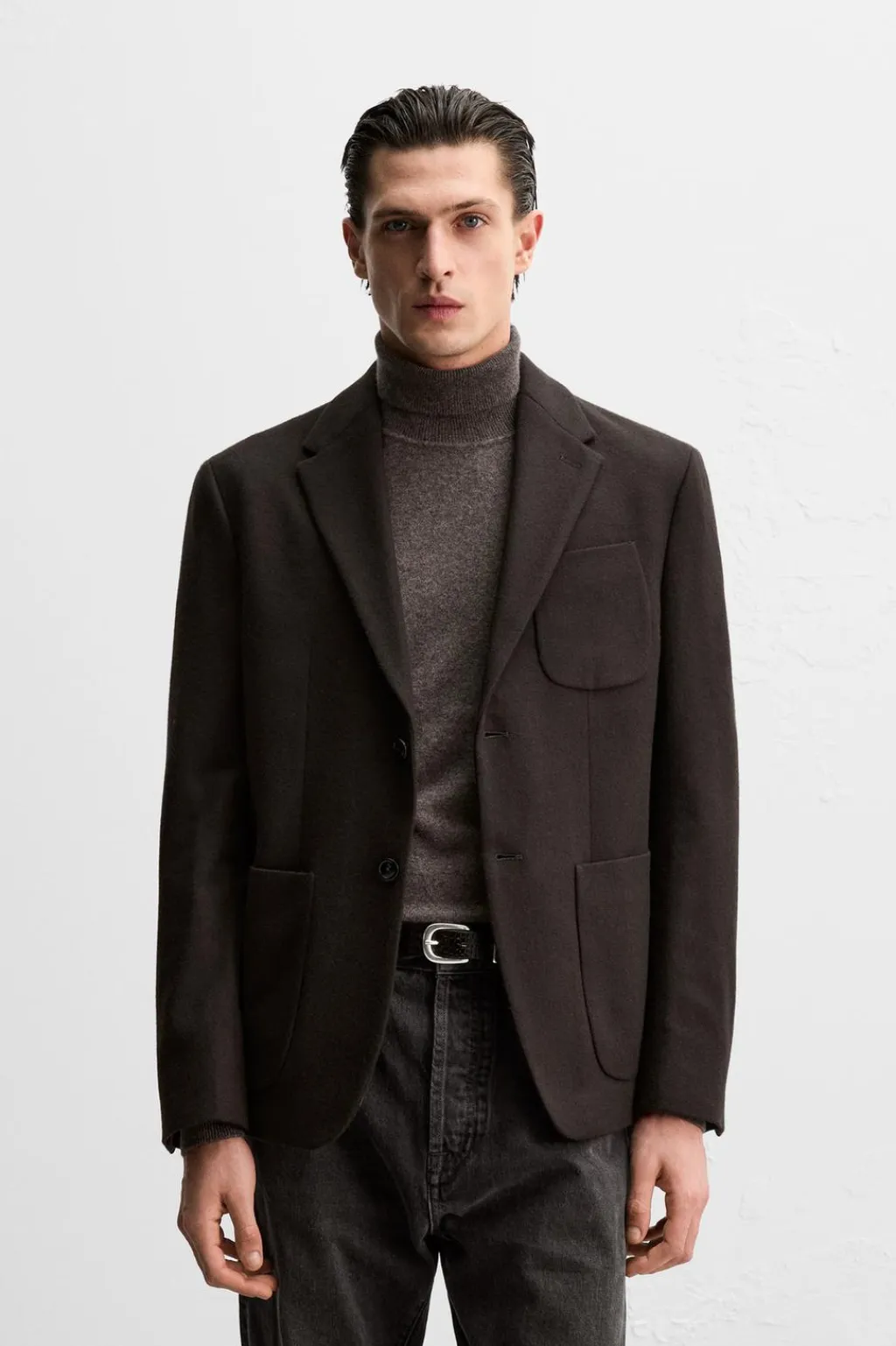 Blazer regular fit confeccionada en tejido de lana con origen italiano.