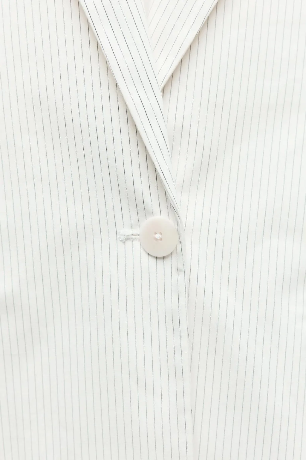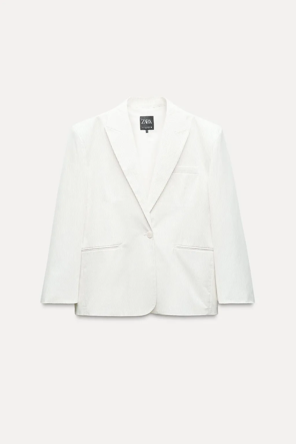 Blazer oversize de cuello solapa. Manga larga con hombreras acabada en abertura. Bolsillos de vivo en delantero y pecho. Forro interior combinado. Cierre frontal con botón.