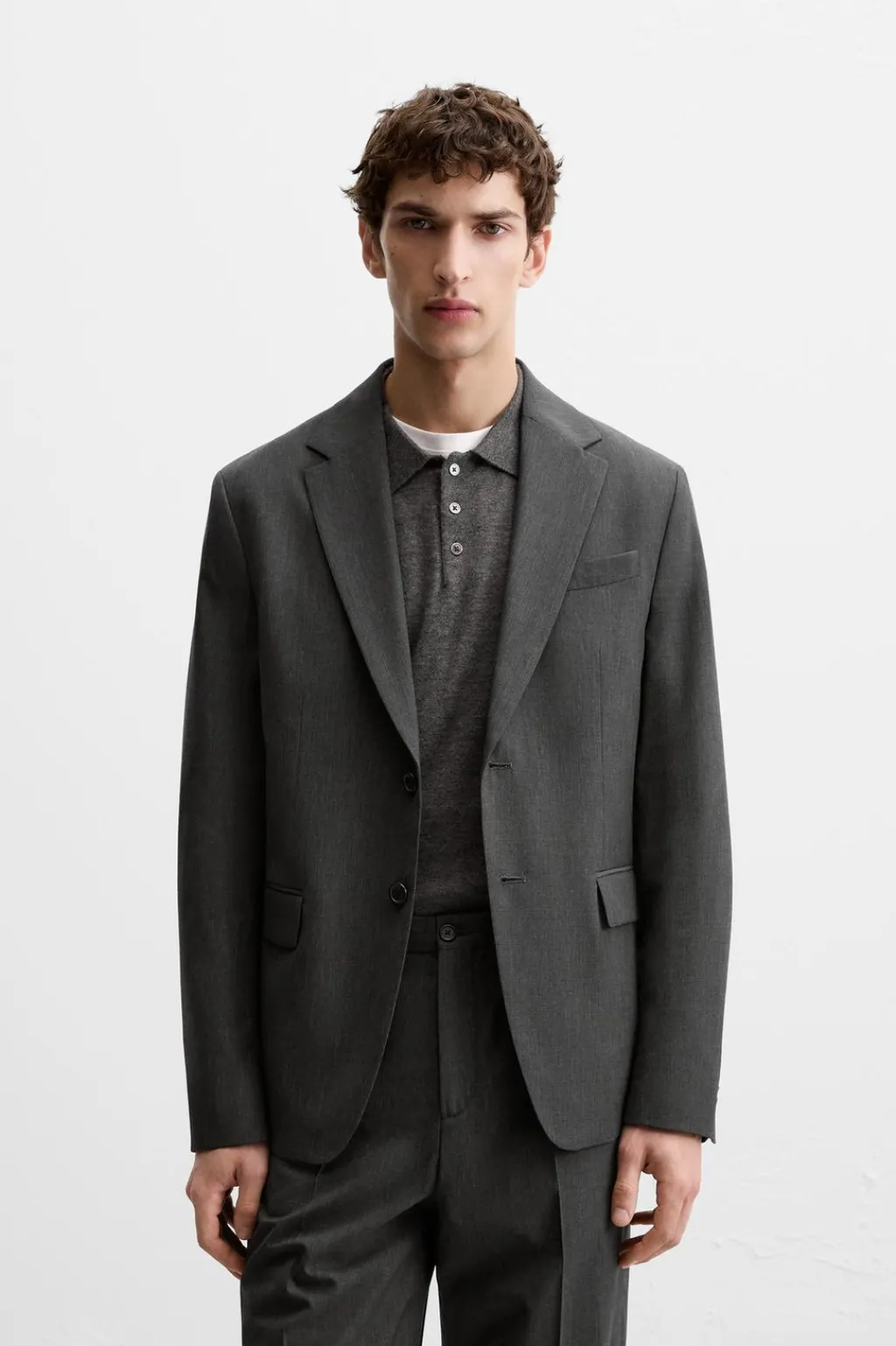 Blazer regular fit. Cuello con solapas de muesca. Manga larga acabada en puño con detalle de botones. Bolsillo de vivo en pecho y de solapa en cadera. Detalle bolsillo interior. Bajo con aberturas en espalda. Cierre frontal con botones.