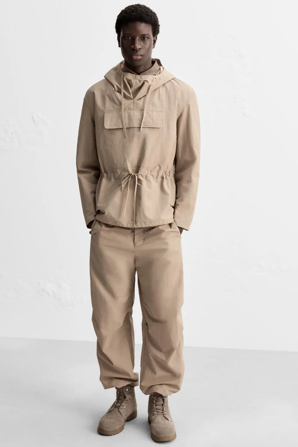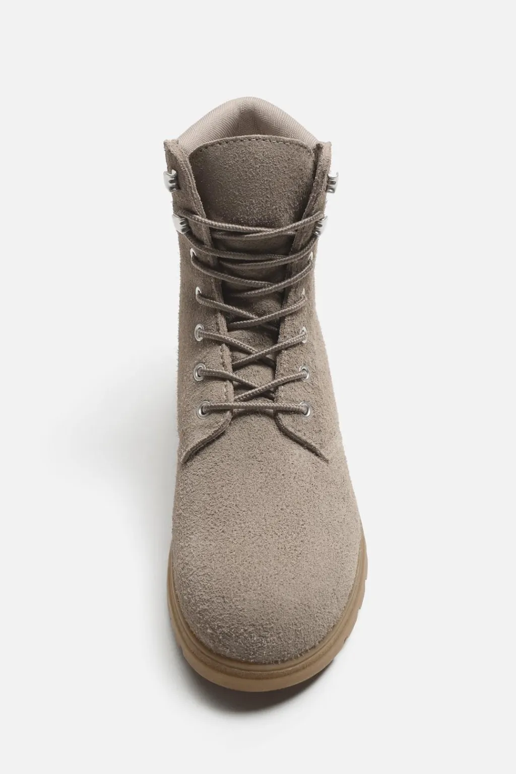 Bota con cordones fabricada en piel con acabado serraje. Cordonera con siete pasados. Plantilla interior fabricada en piel. Suela en contraste de color con algo de volumen y piso track.