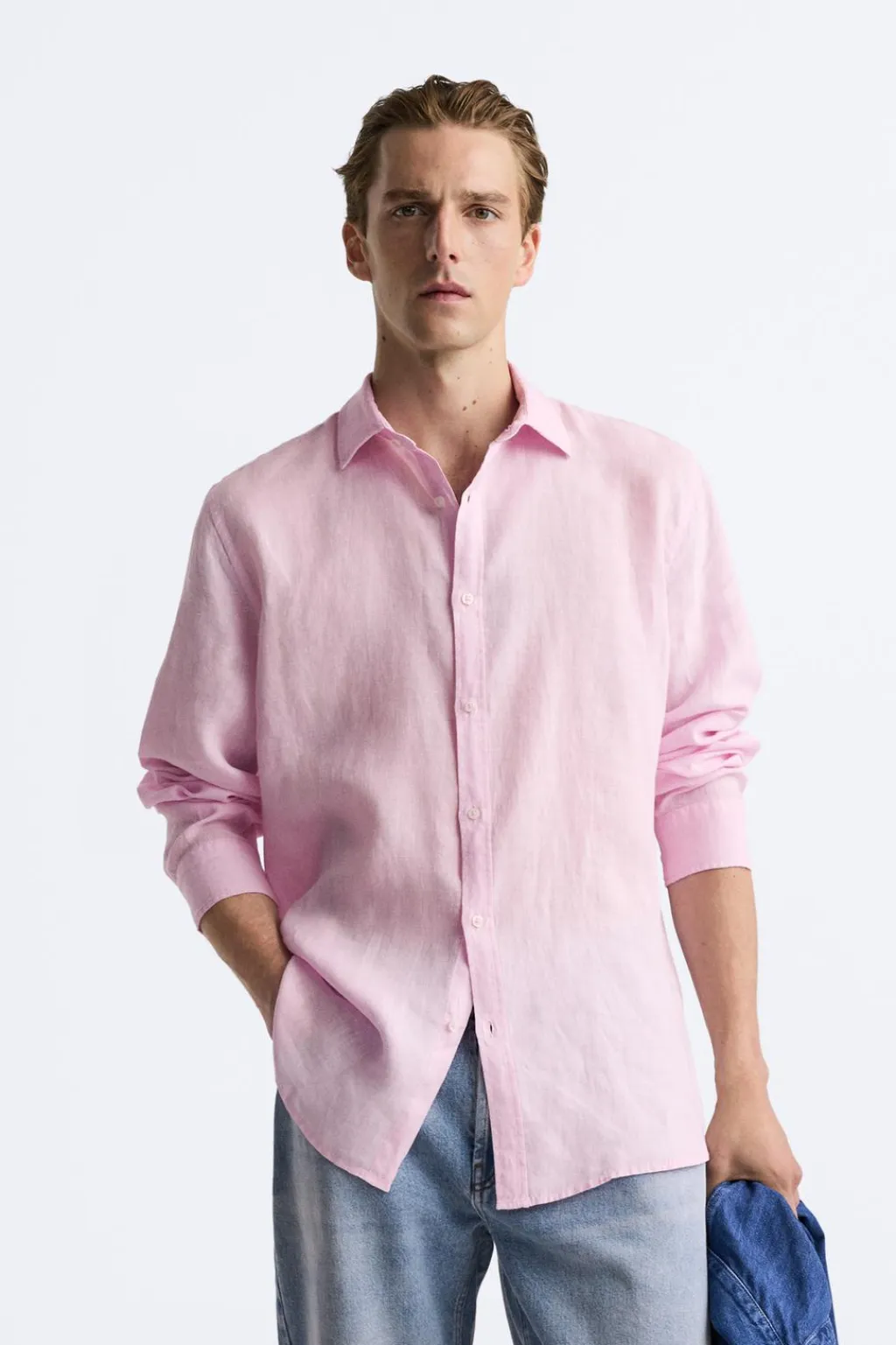 Camisa regular fit confeccionada en tejido de lino. Cuello solapa y manga larga acabada en puño con botón. Cierre frontal de botonadura.