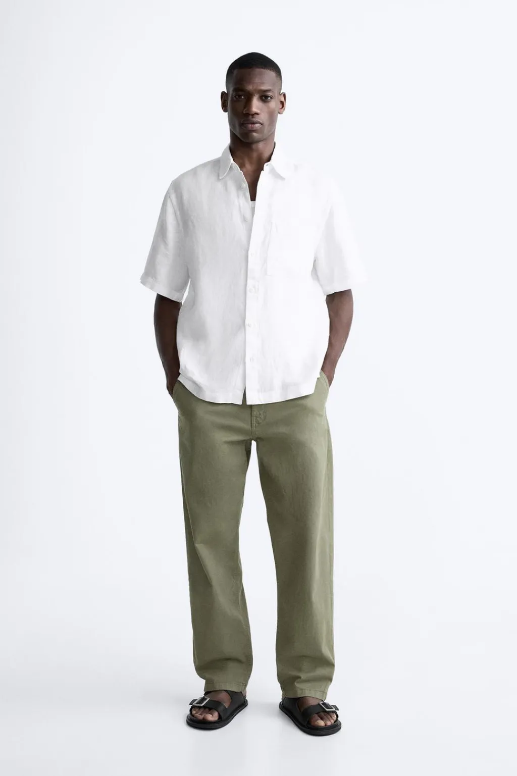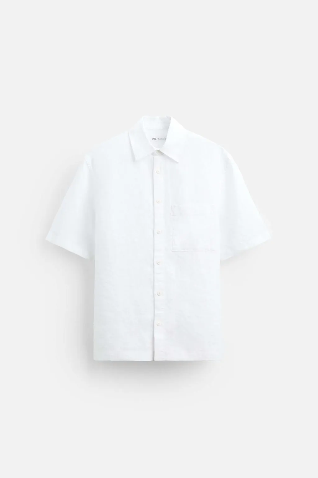 Camisa relaxed fit confeccionado en tejido ligero de lino. Cuello solapa y manga corta. Bolsillo plastrón en pecho. Cierre frontal de botonadura.