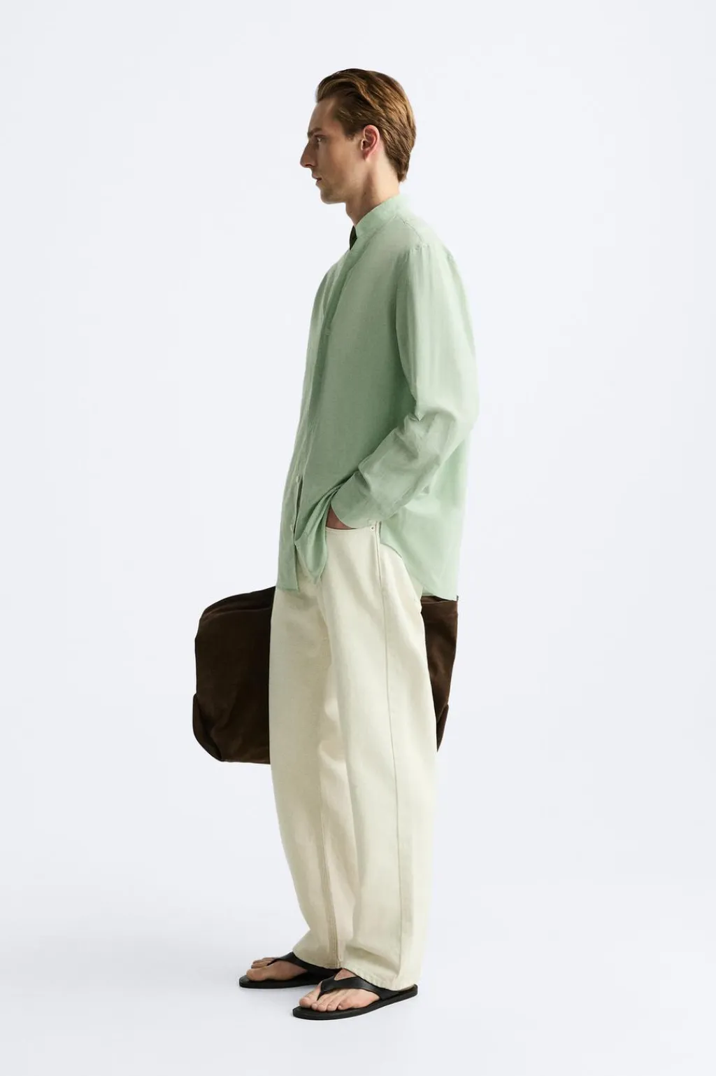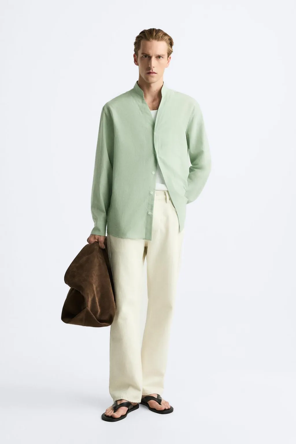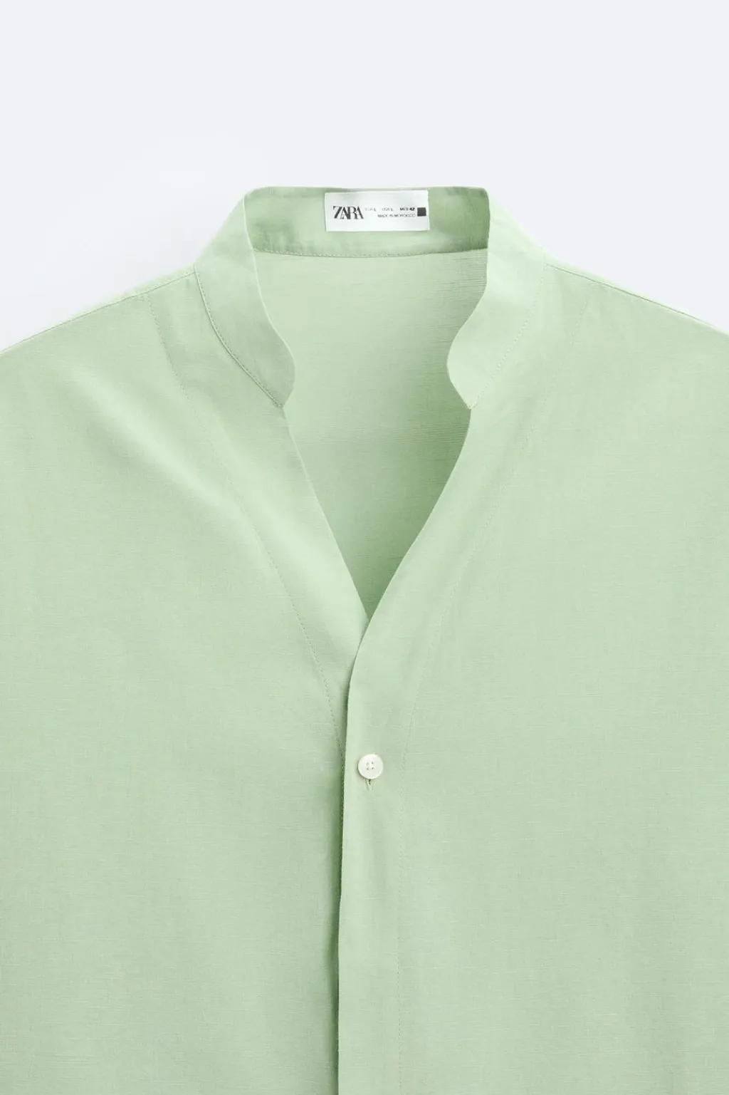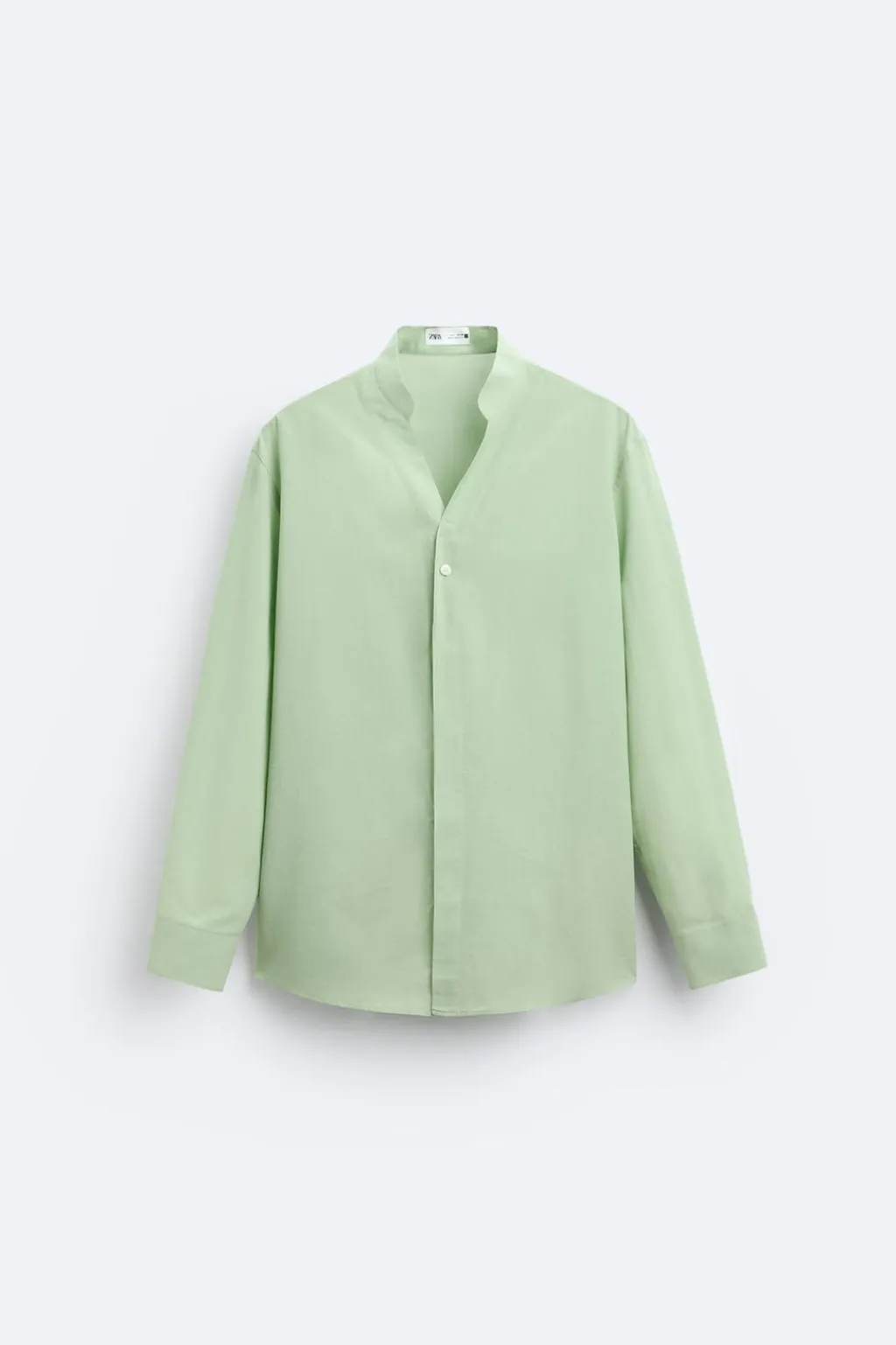 Camisa relaxed fit confeccionada en tejido con mezcla de algodón y lino. Cuello tira con abertura frontal. Manga larga acabada en puño con botón. Cierre frontal de botonadura.