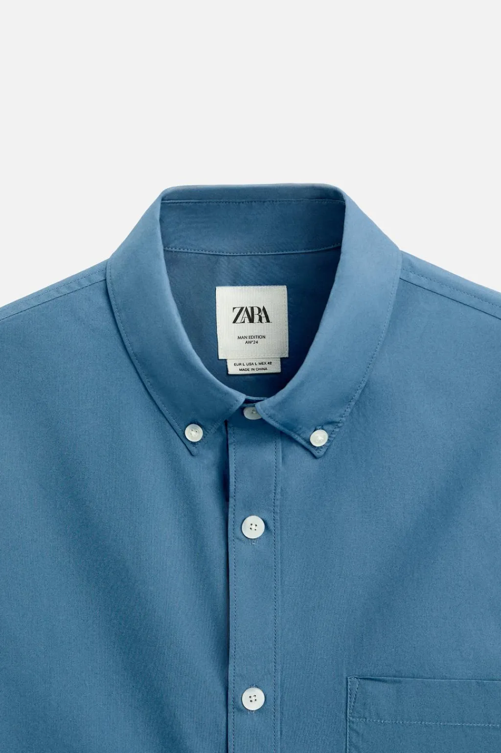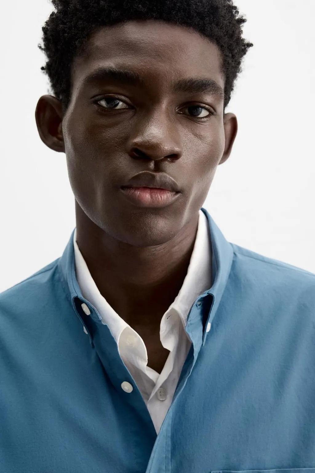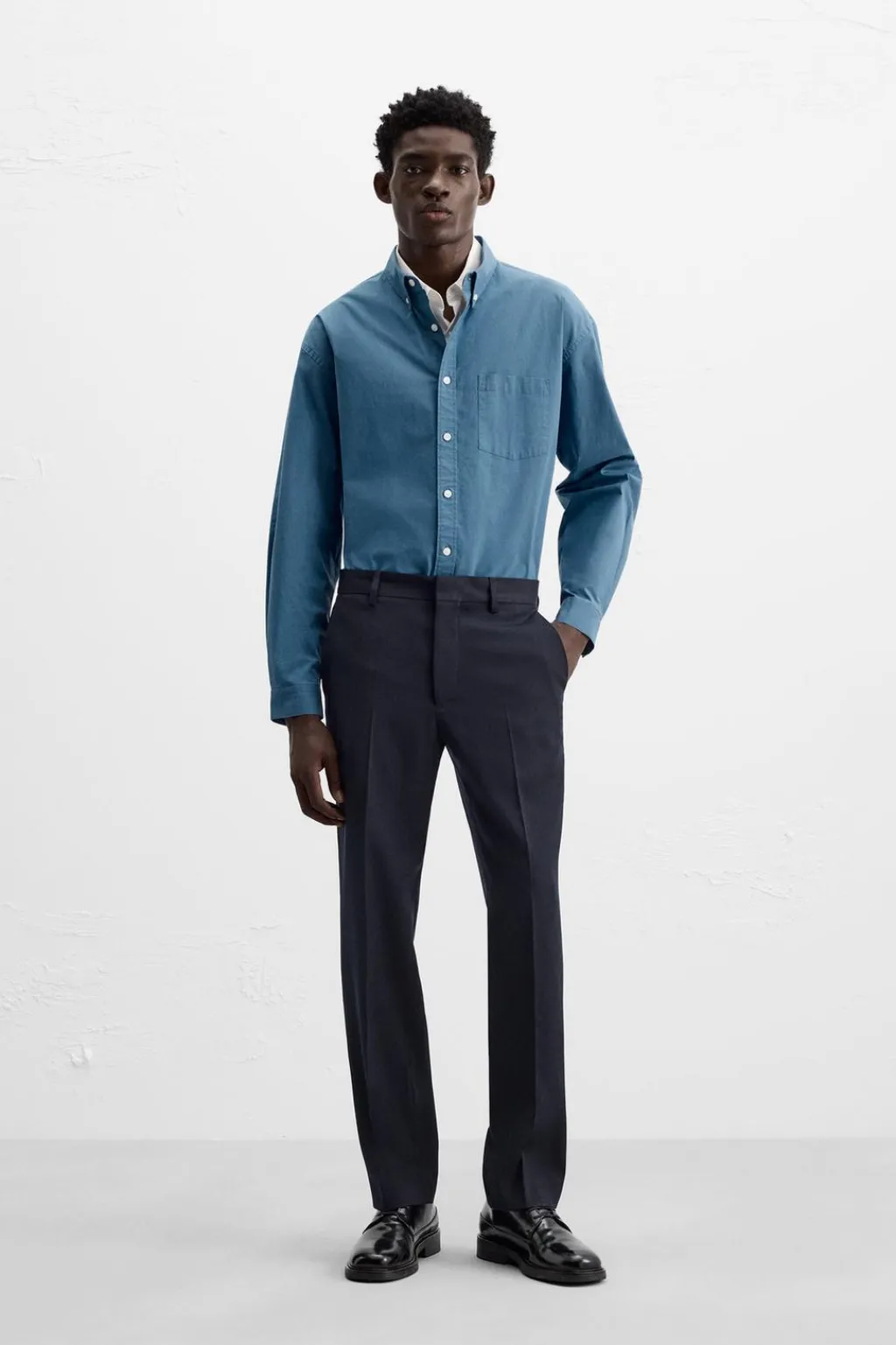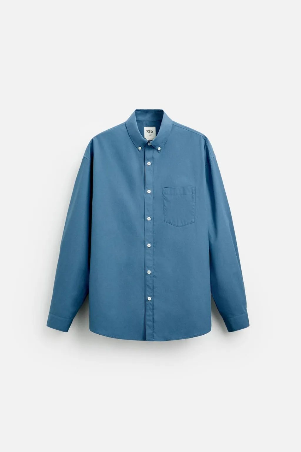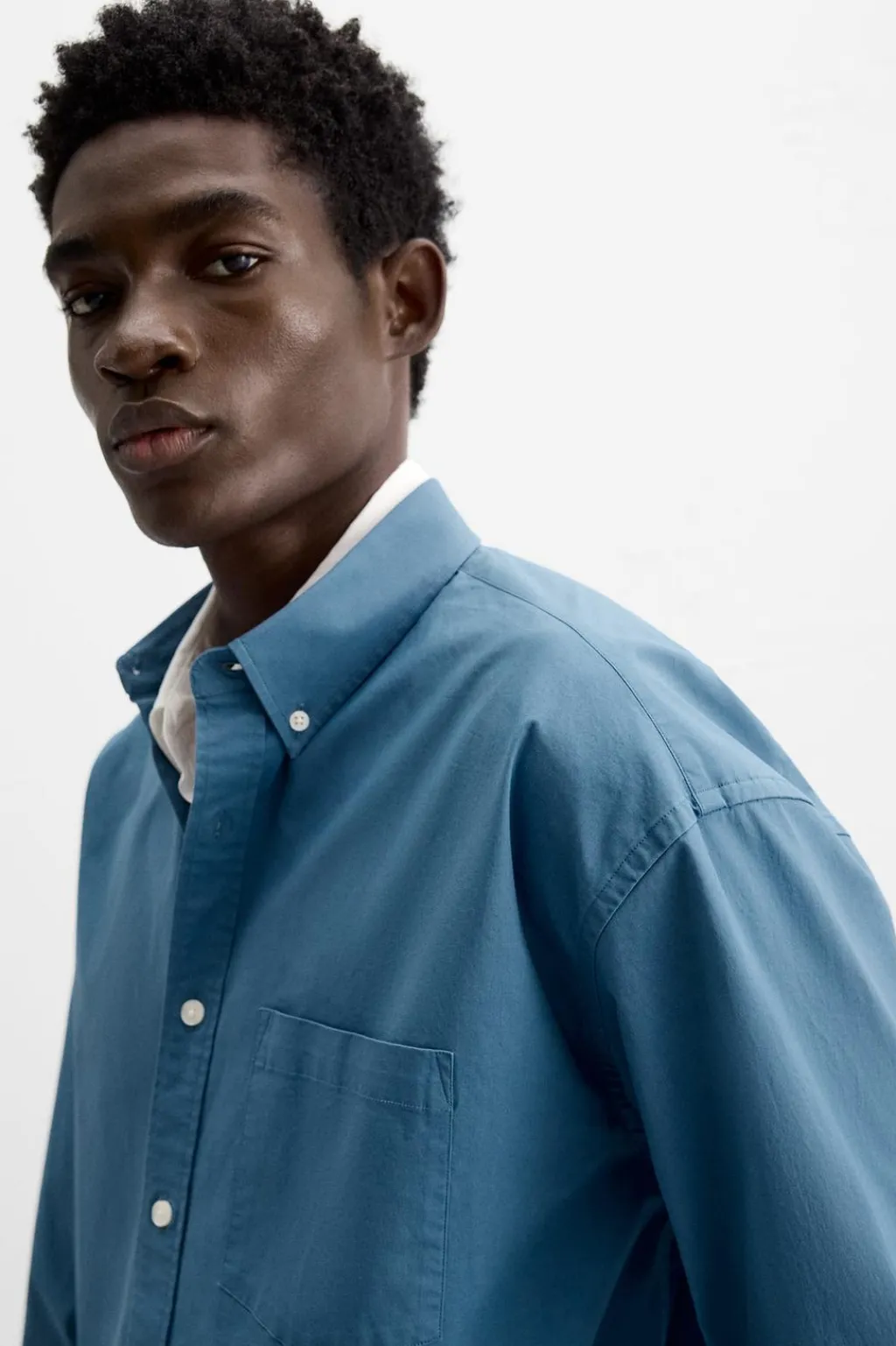 Camisa relaxed fit confeccionada en tejido compacto de algodón. Cuello abotonado y manga larga acaba en puño con botón. Bolsillo plastrón en pecho. Cierre frontal de botonadura.
