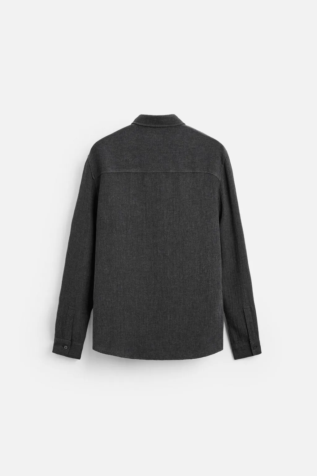 Camisa regular fit confeccionada en tejido fluído con viscosa. Cuello solapa y manga larga acabada en puño con botón. Bajo asimétrico. Cierre frontal de botonadura.