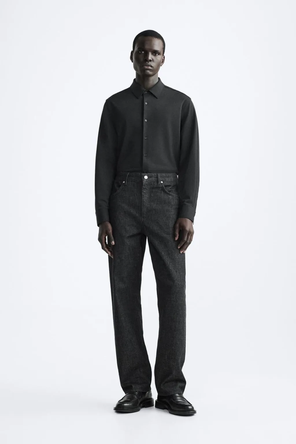 Camisa slim fit confeccionada en un tejido que minimiza la necesidad de plancha después del lavado. Cuello italiano y manga larga acabada en puño con botón. Cierre frontal de botonadura.