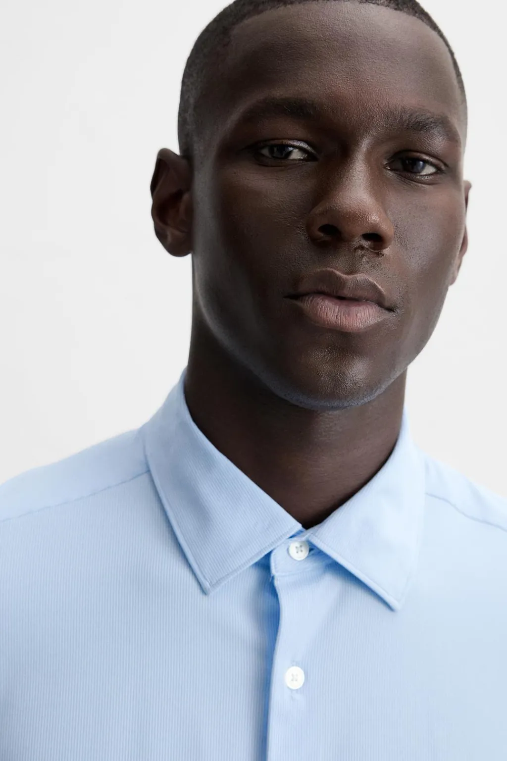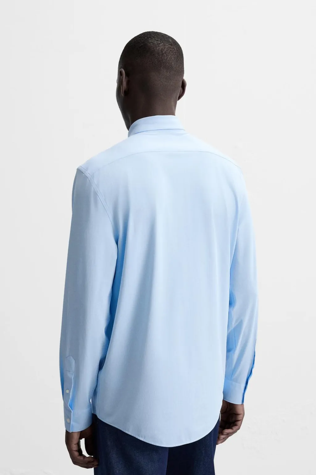 Camisa slim fit confeccionada en un tejido que minimiza la necesidad de plancha después del lavado. Cuello italiano y manga larga acabada en puño con botón. Cierre frontal de botonadura.