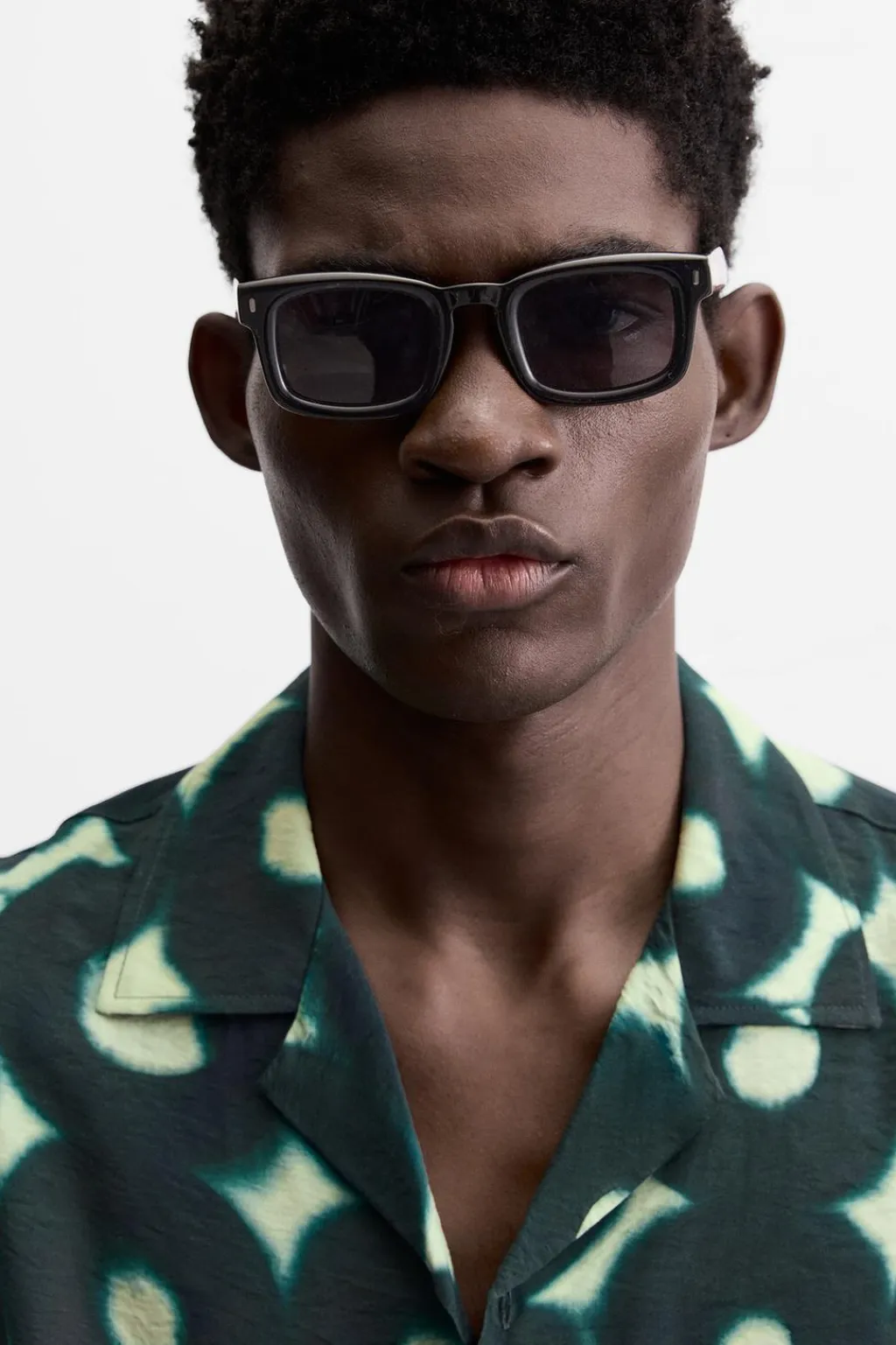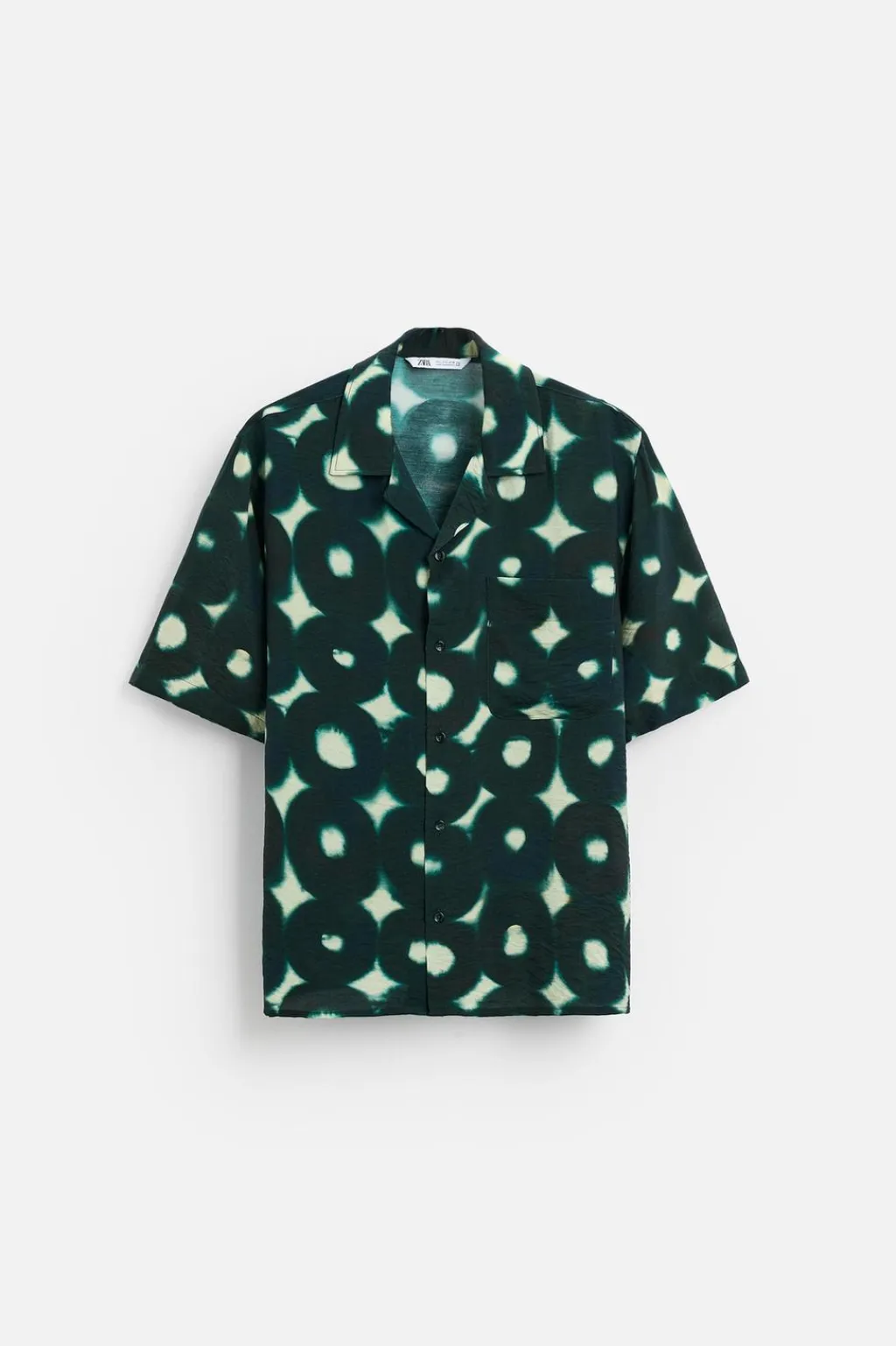 Camisa relaxed fit confeccionada en tejido con mezcla de viscosa. Cuello bowling y manga corta. Bajo con aberturas laterales. Cierre frontal de botonadura.