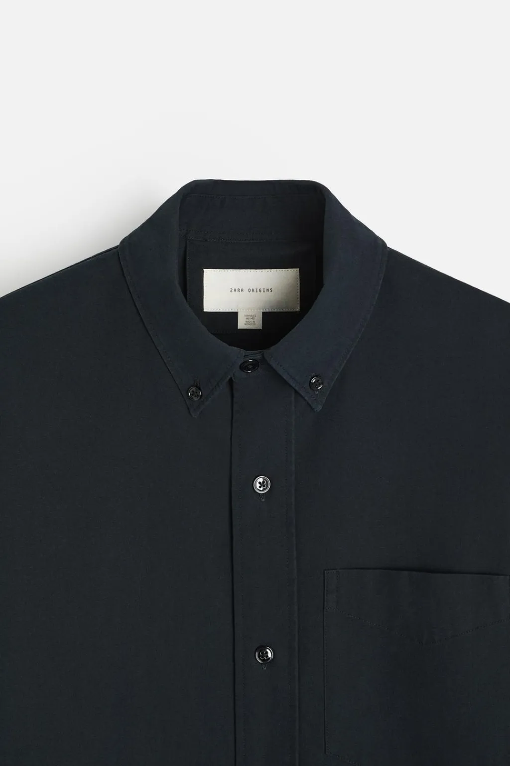 Camisa regular fit confeccionada en tejido compacto de algodón. Cuello abotonado y manga larga acabada en puño con botón. Bolsillo plastrón en pecho. Cierre frontal de botonadura.