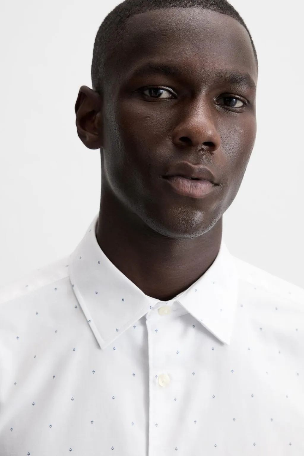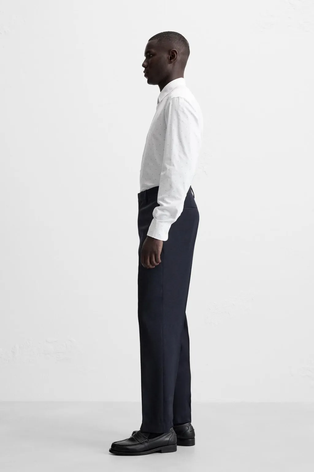 Regular fit. Cuello italiano y manga larga acabada en puño con botón. Cierre frontal de botonadura.