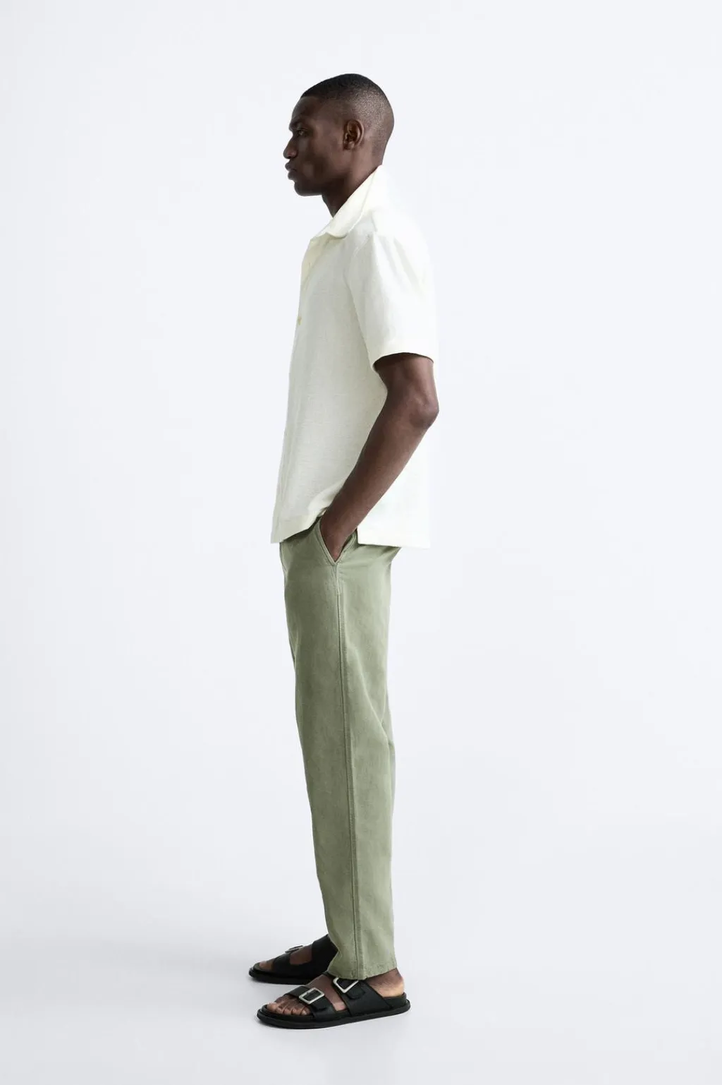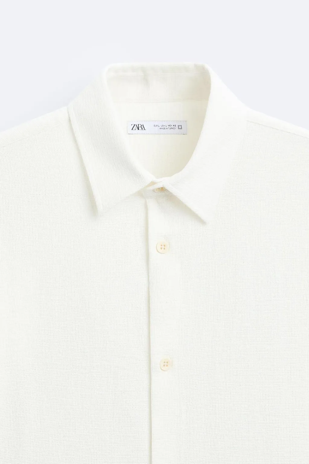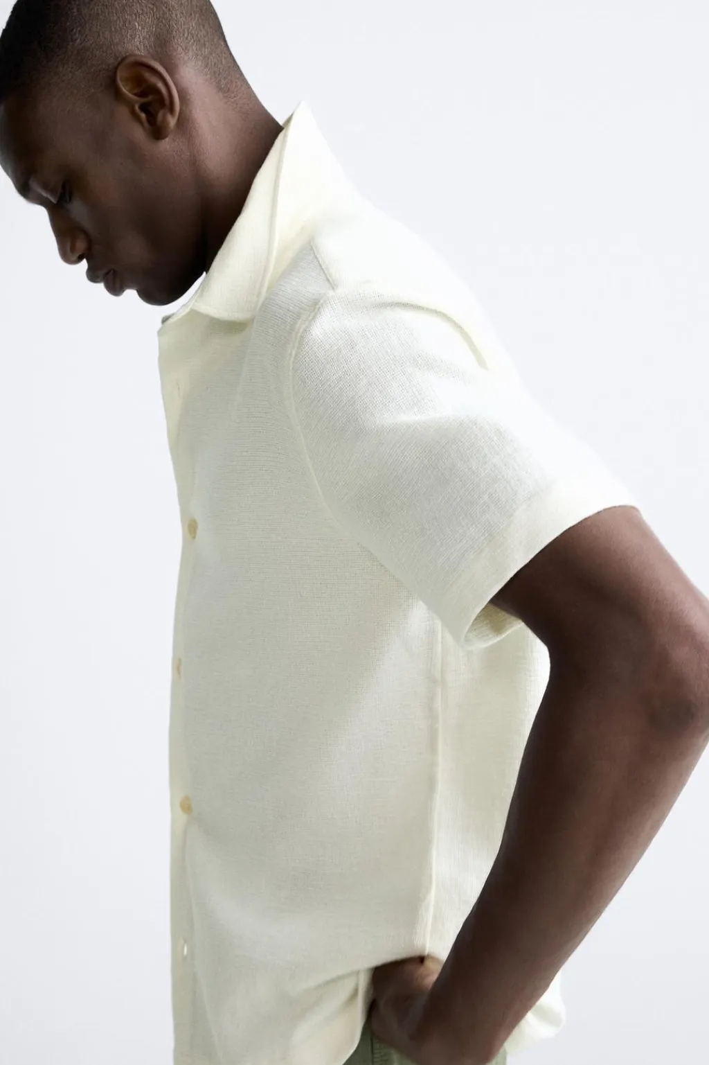 Camisa relaxed fit confeccionada en tejido con estructura. Cuello solapa y manga corta. Bajo con aberturas laterales. Cierre frontal de botonadura.