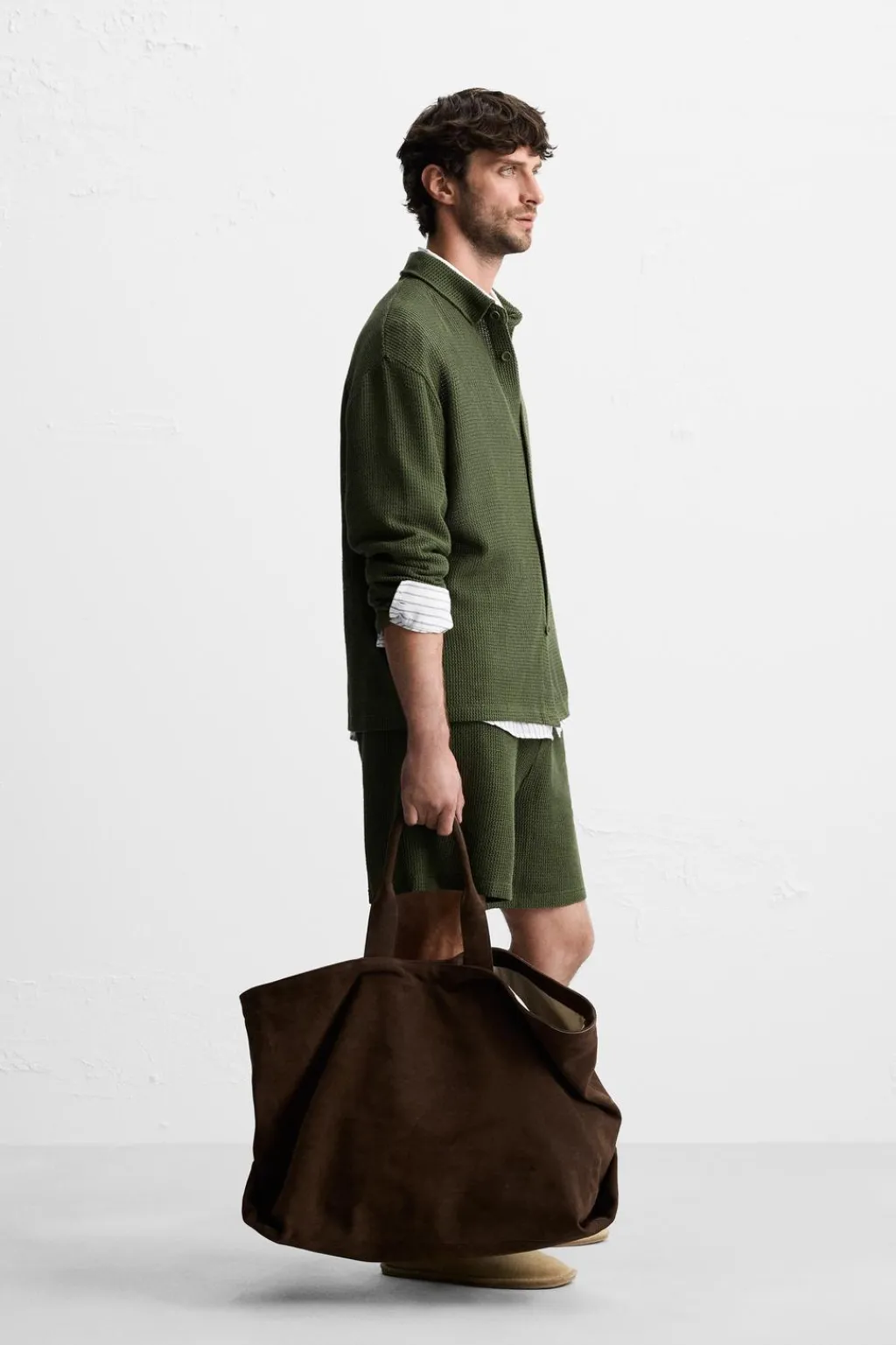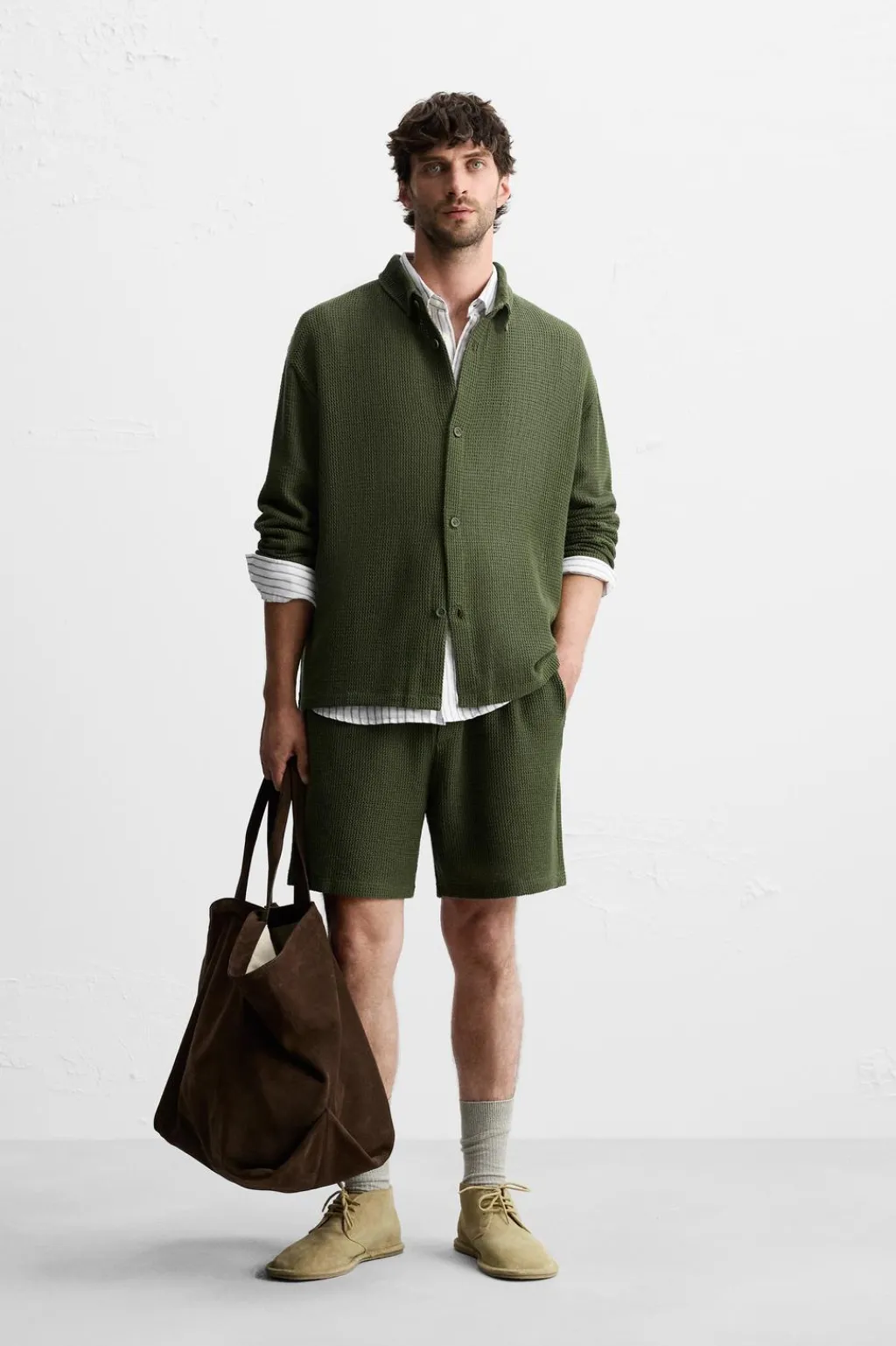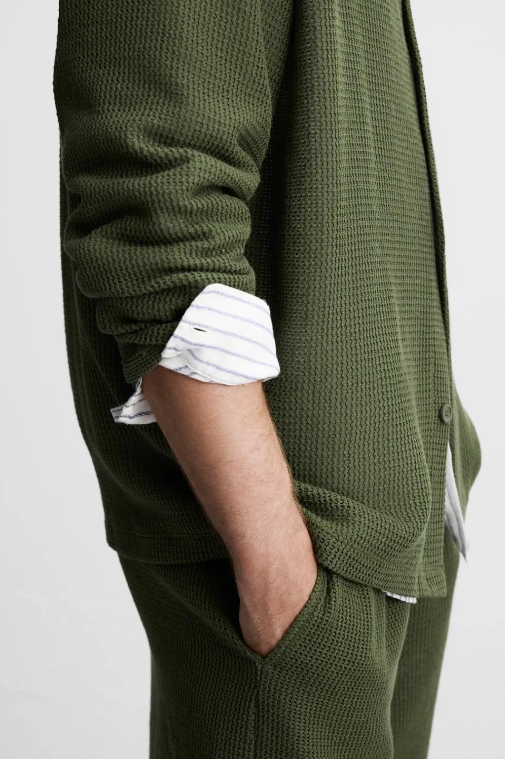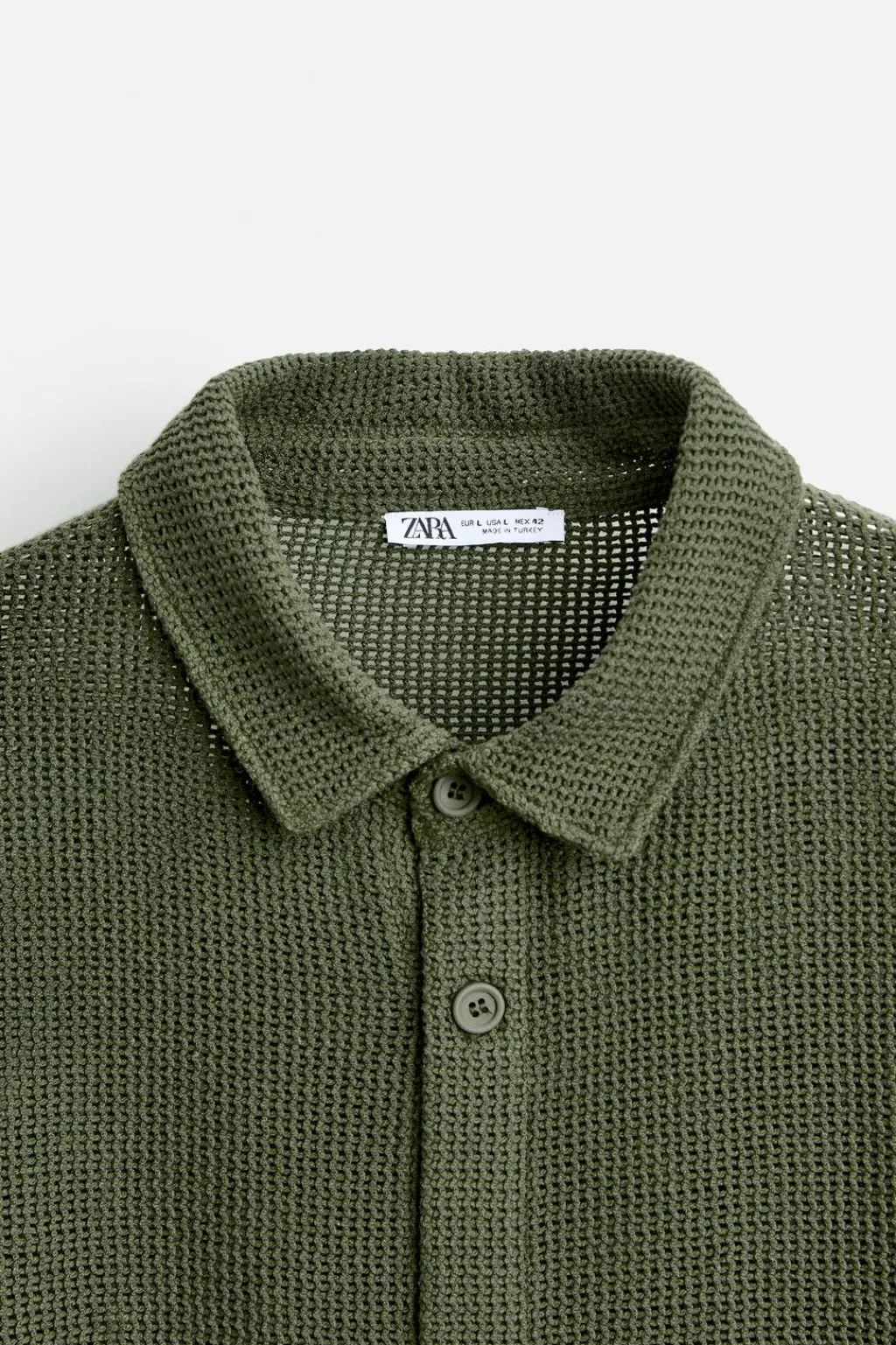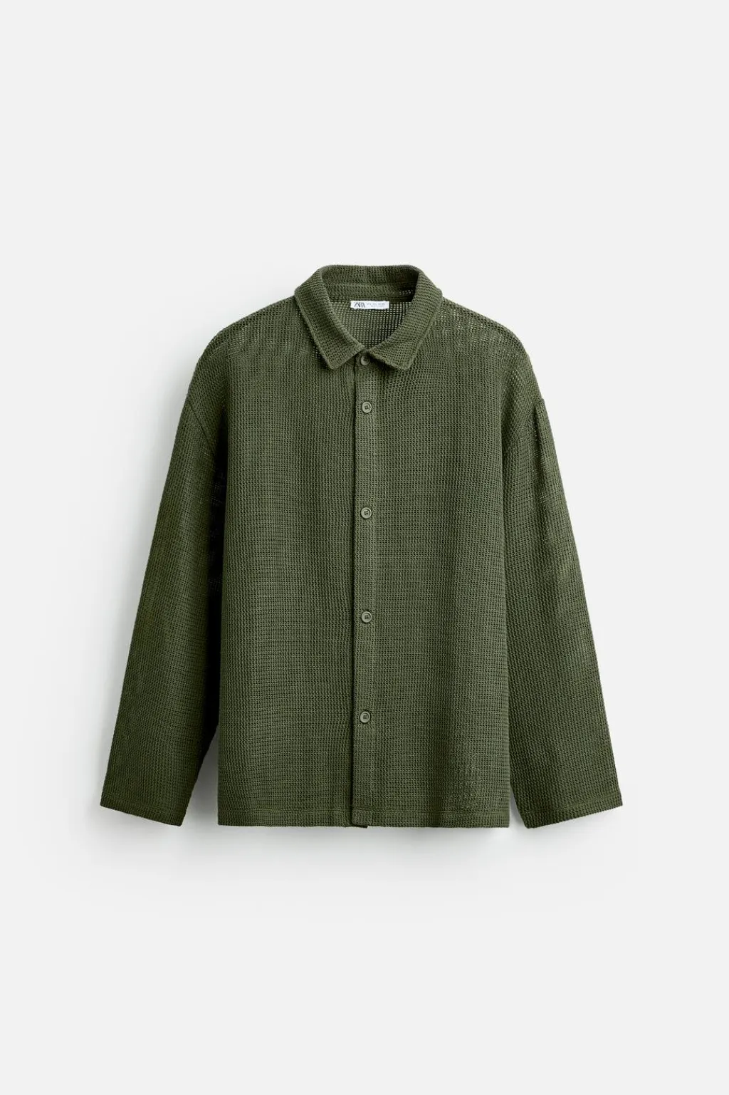 Camisa relaxed fit confeccionada en tejido con estructura abierta. Cuello solapa y manga larga. Cierre frontal de botonadura.