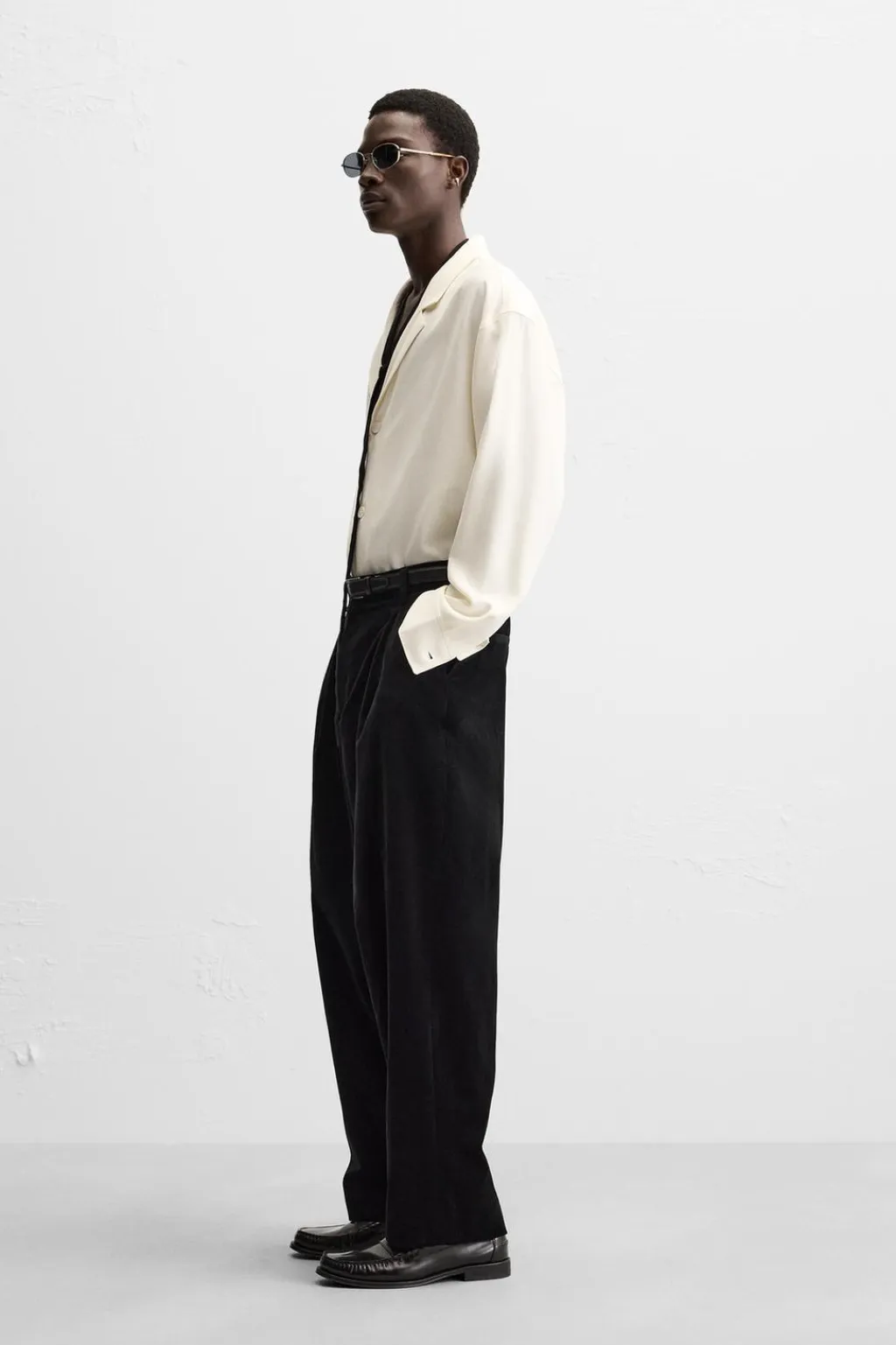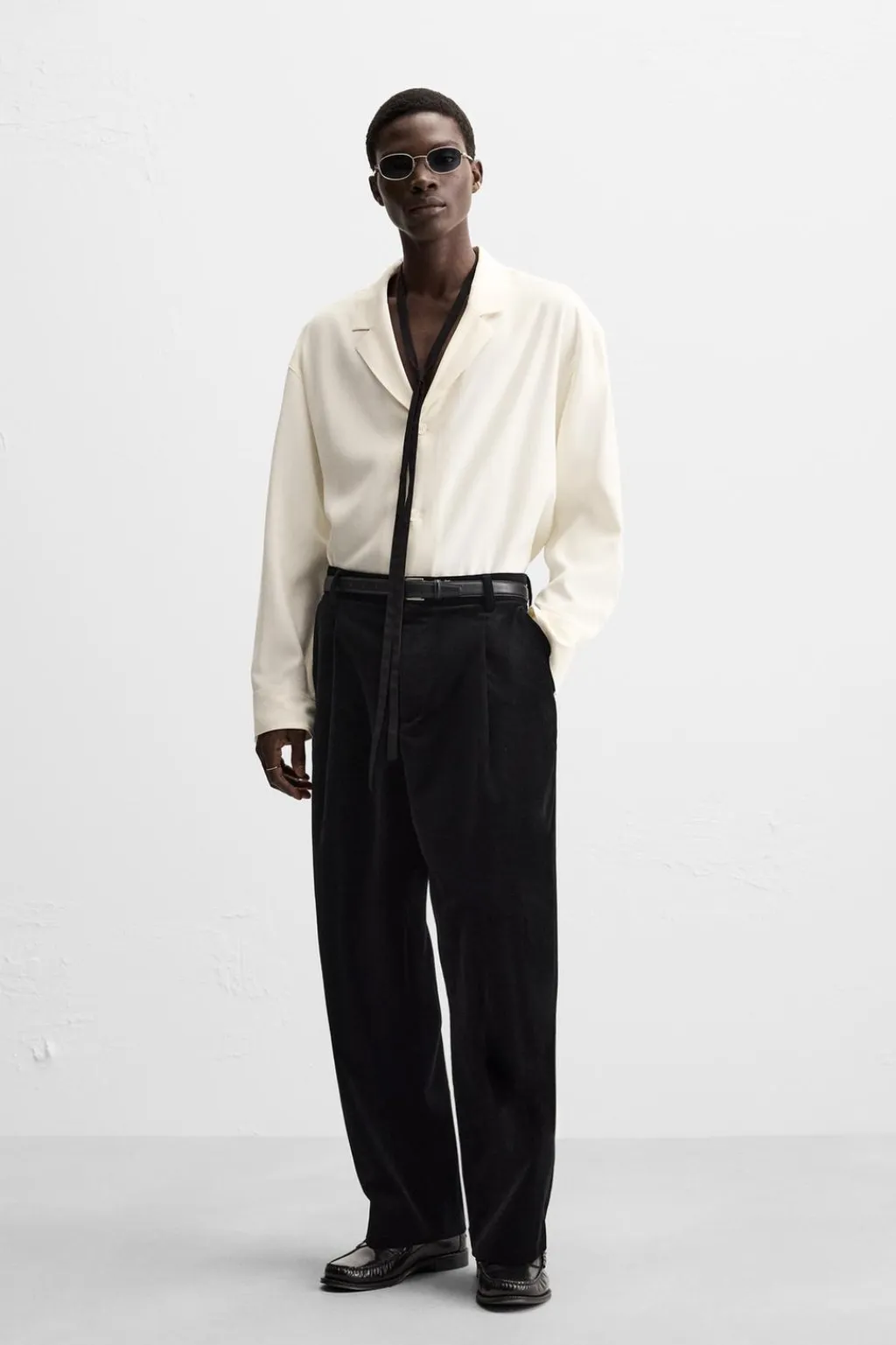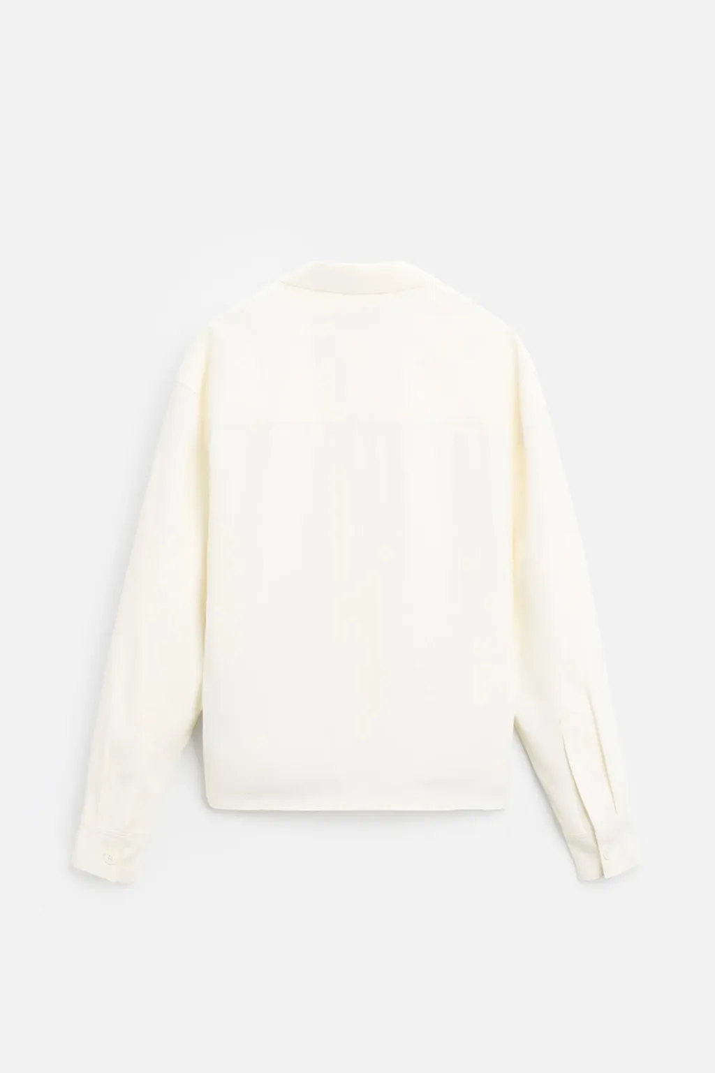 Camisa relaxed fit confeccionada en tejido con mezcla de viscosa. Cuello bowling y manga larga acabada en puño con botón. Bajo con aberturas laterales. Largo cropped. Cierre frontal de botonadura.