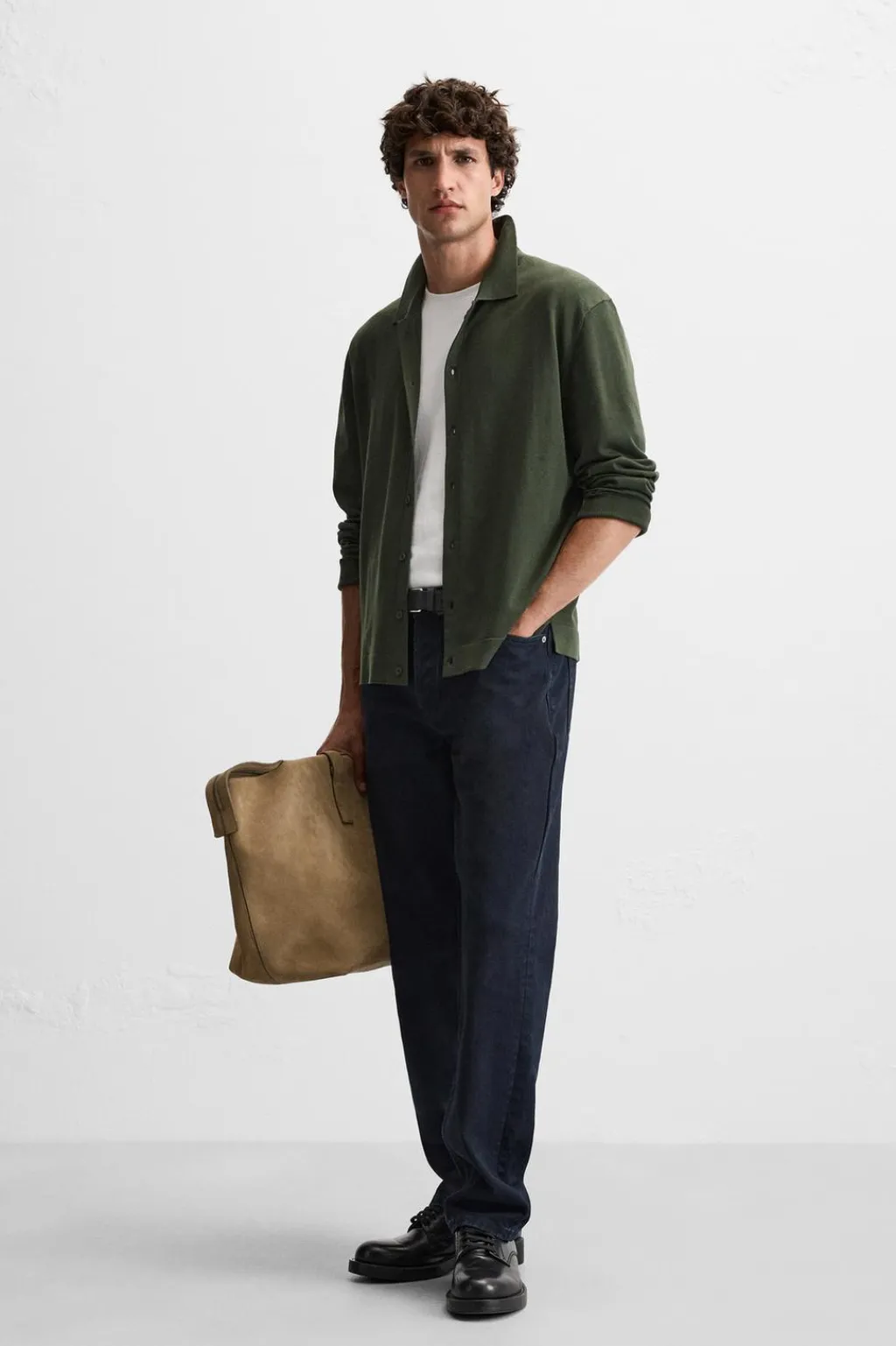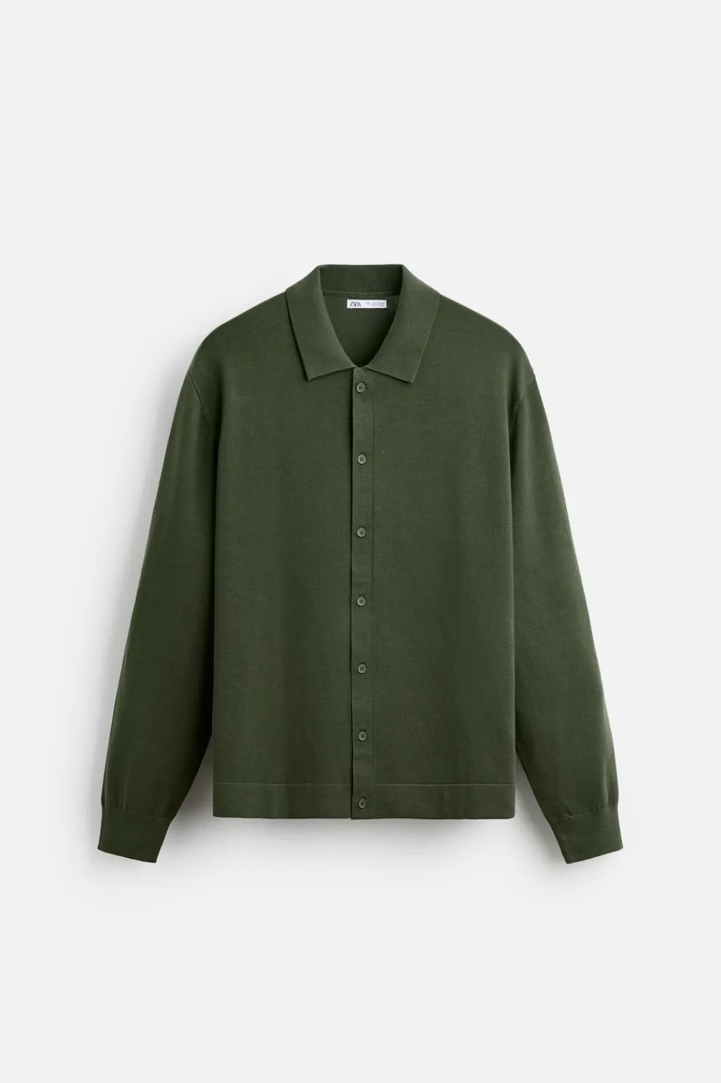 Camisa regular fit tejida en hilatura con mezcla de lyocell. Cuello solapa y manga larga. Bajo con aberturas laterales. Cierre frontal de botonadura.