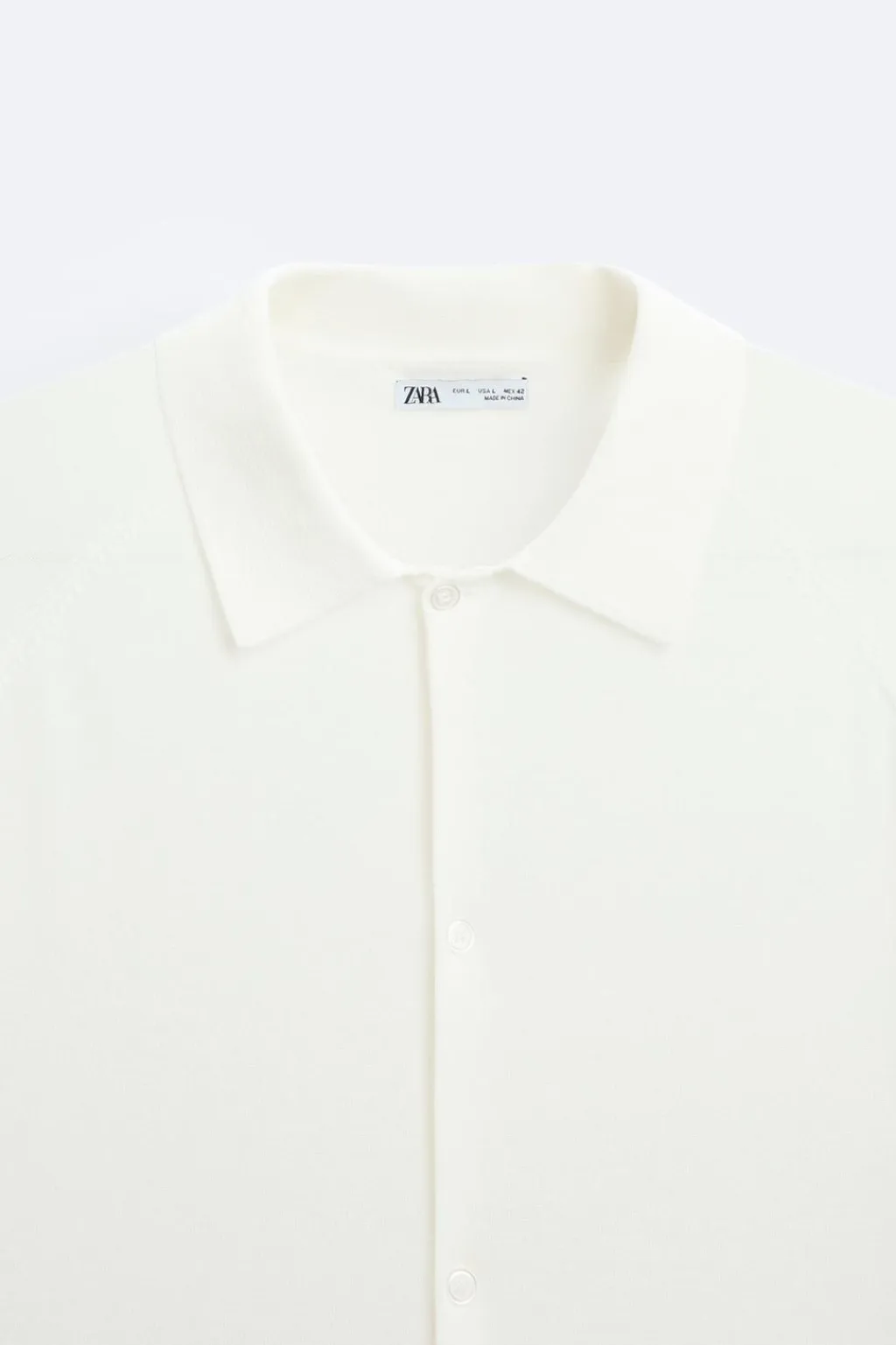 Camisa de punto tejida en hilatura con algodón. Cuello solapa y manga corta. Bajo con aberturas laterales. Cierre frontal de botonadura.