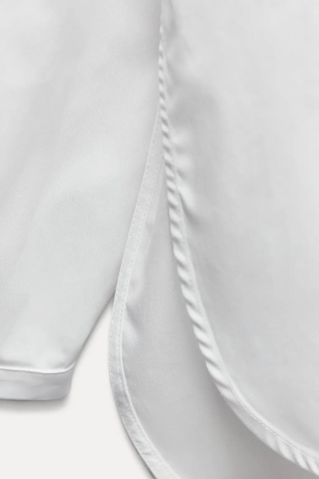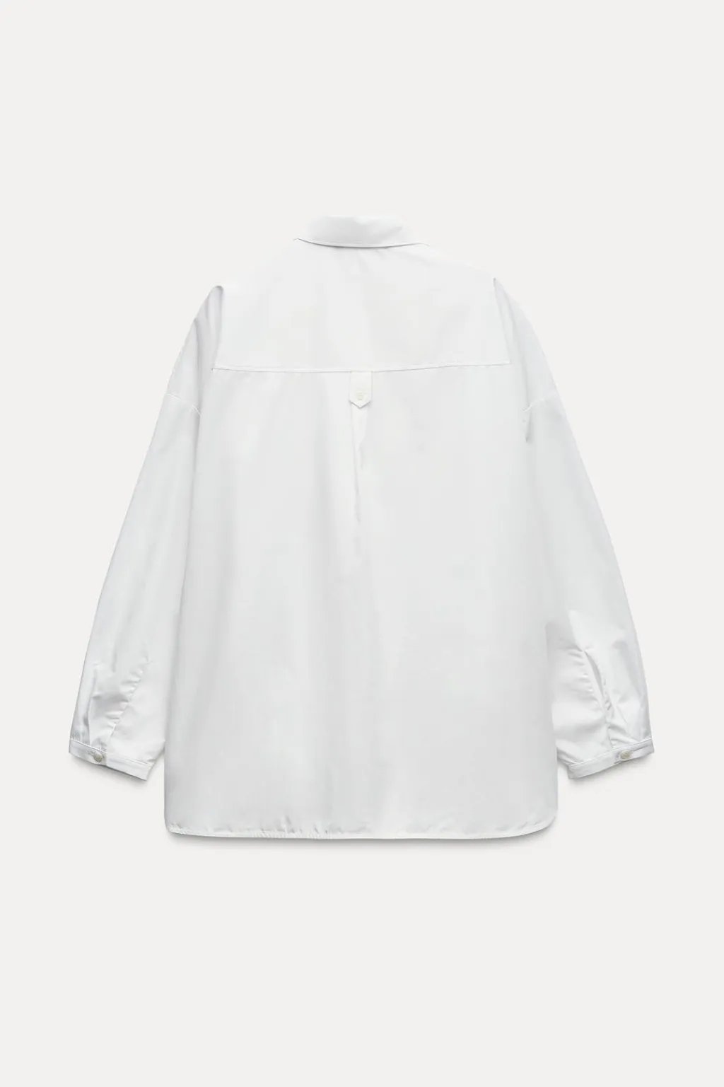 Camisa oversize de cuello solapa. Manga larga acabada en puño con pliegues y hombro caído. Bolsillo de plastrón en pecho. Bajo con aberturas laterales y botones. Cierre frontal con botones.