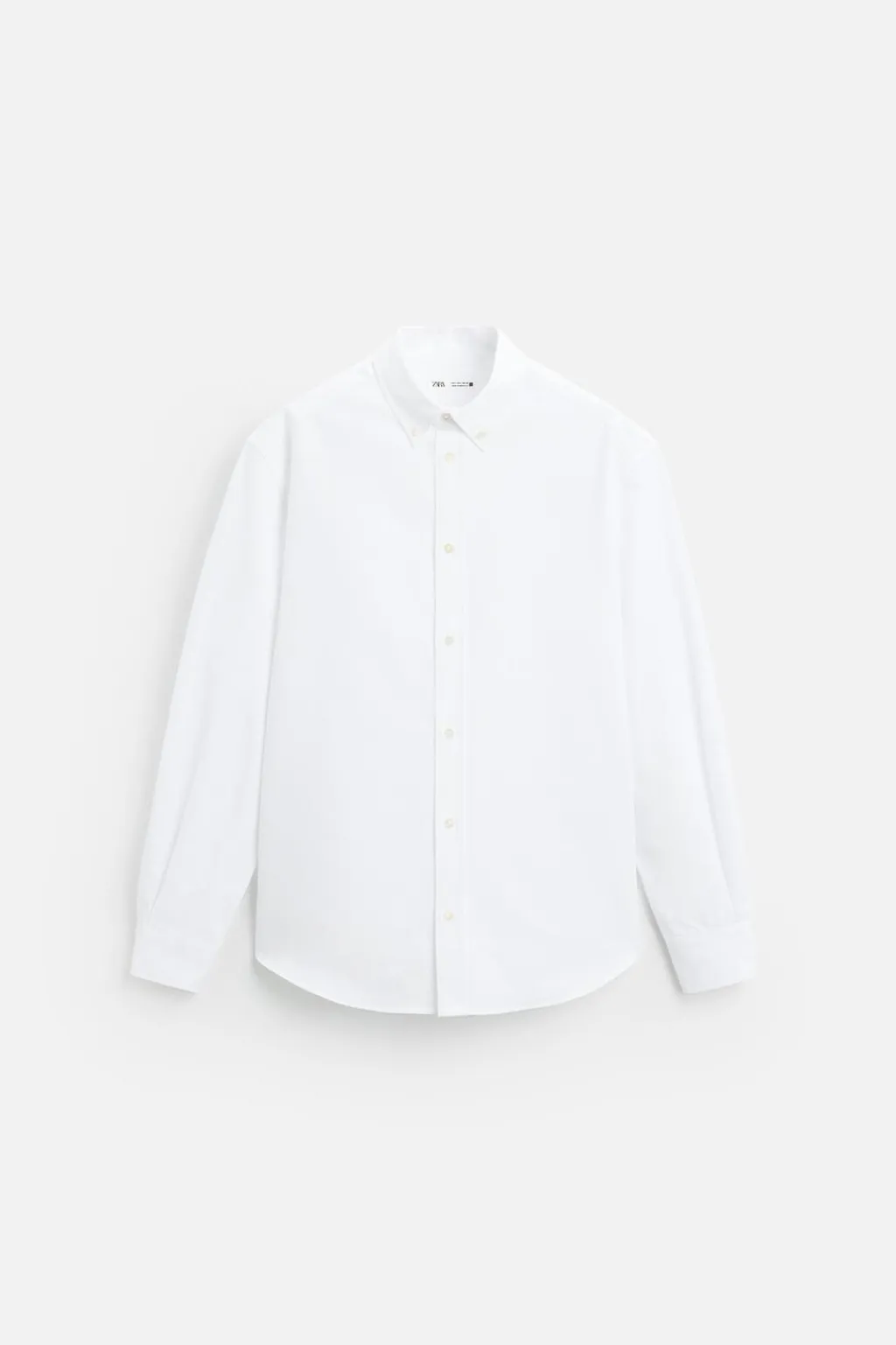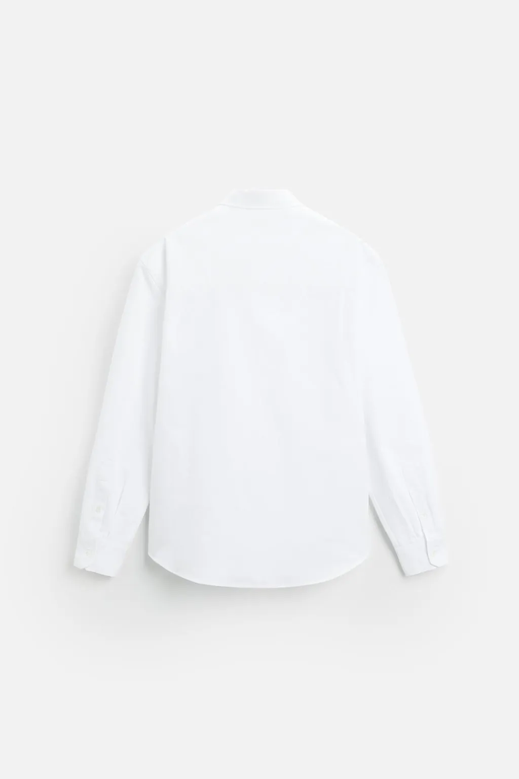 Camisa relaxed fit confeccionada en tejido compacto de algodón con estructura oxford. Cuello abotonado y manga larga acabada en puño con botón. Cierre frontal de botonadura.