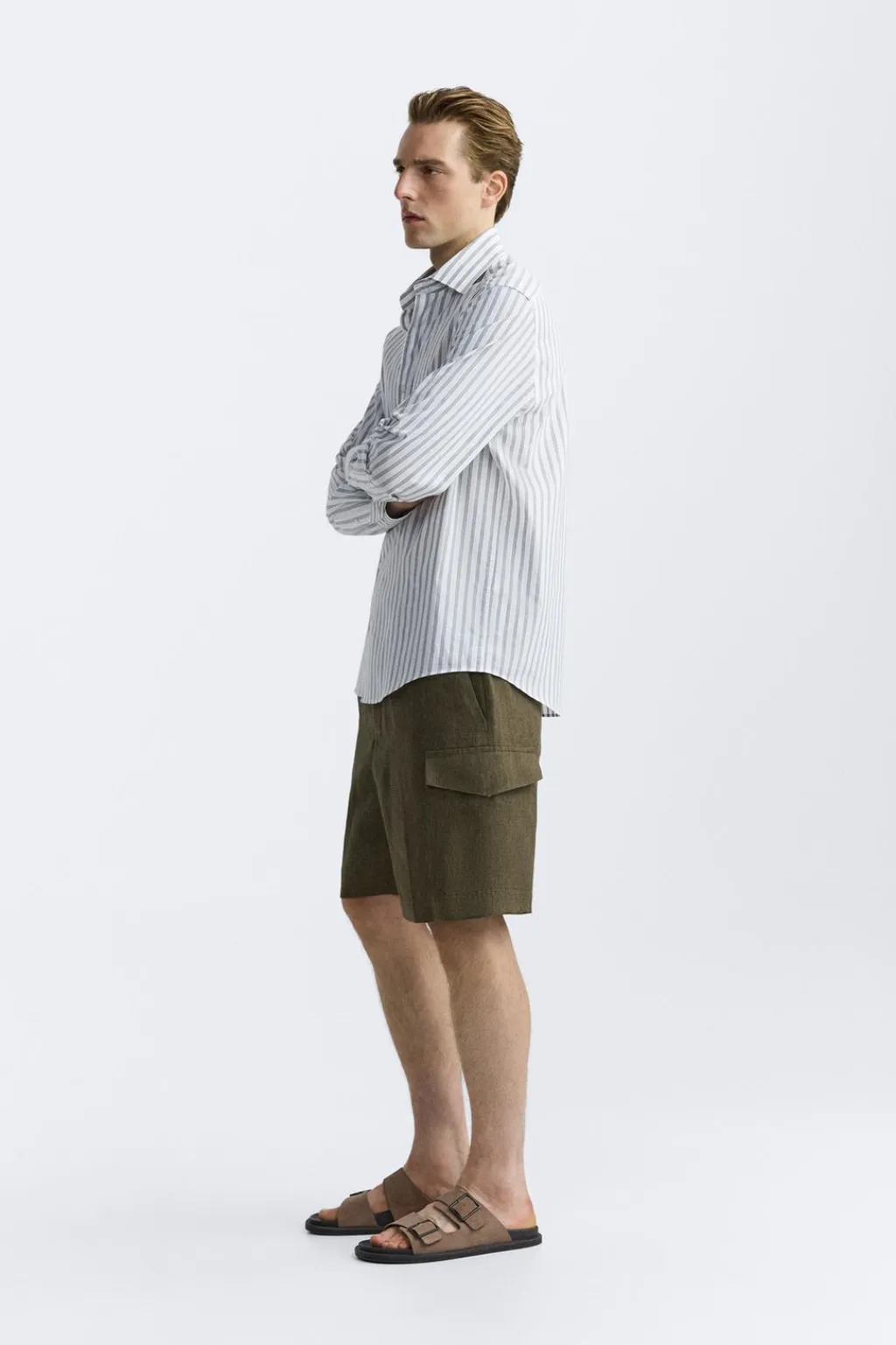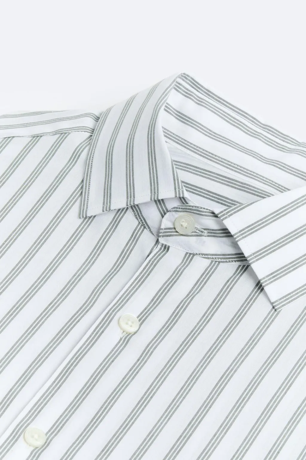 Camisa regular fit confeccionada en tejido de algodón. Cuello italiano y manga larga acaba en puño con botón. Cierre frontal de botonadura.