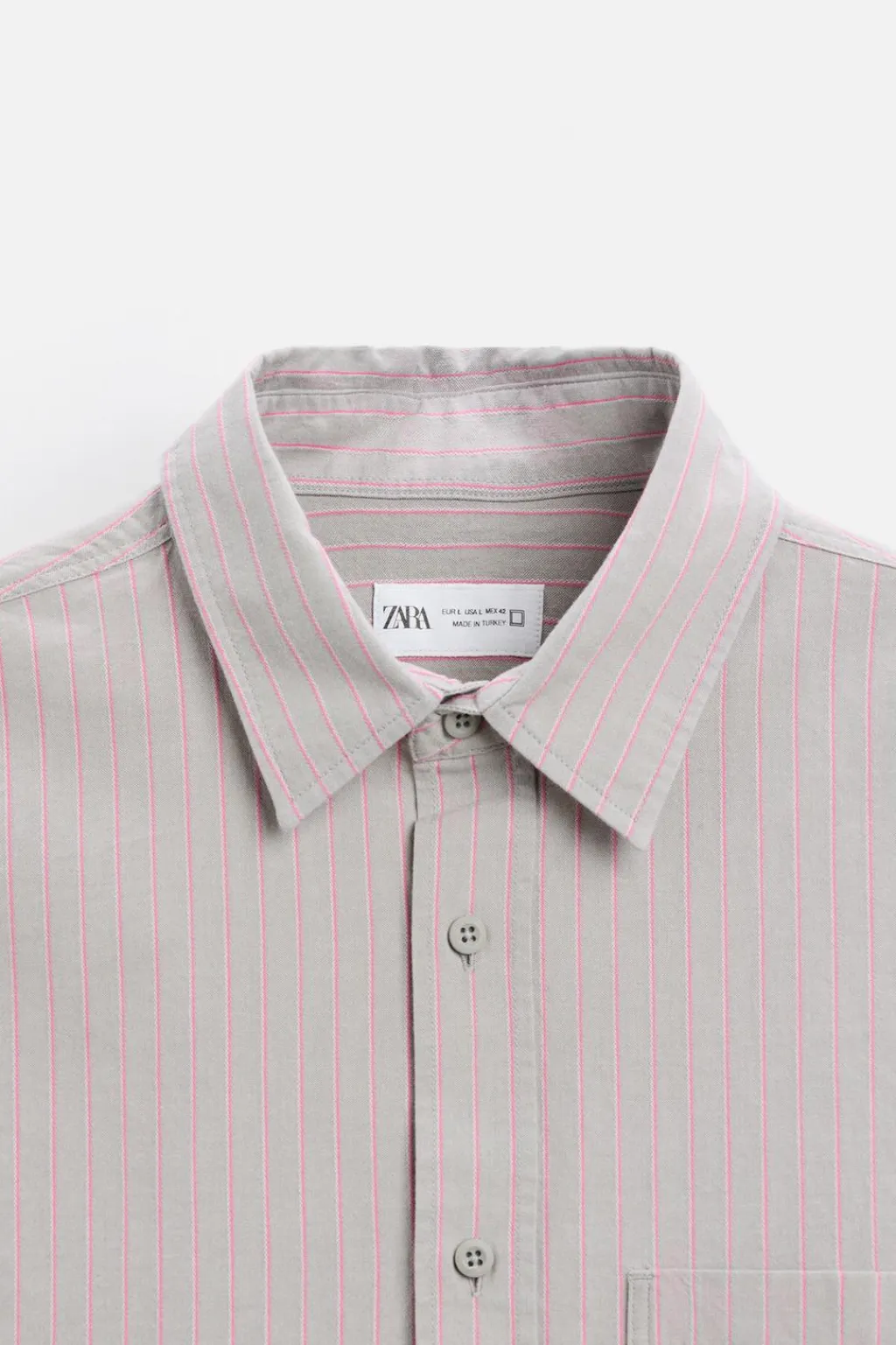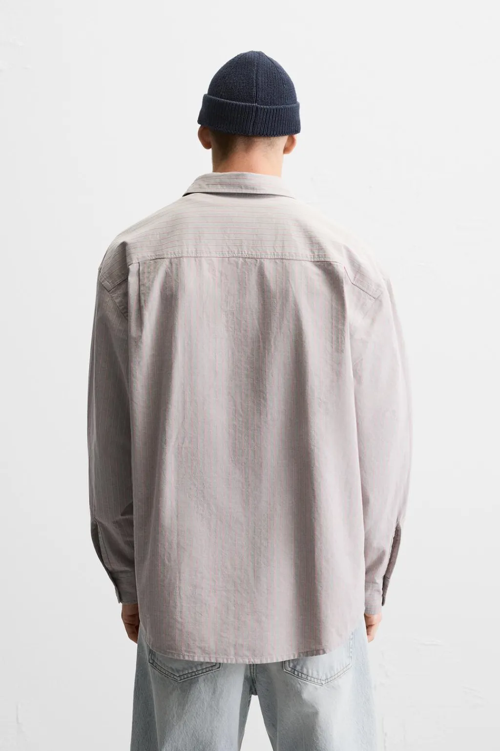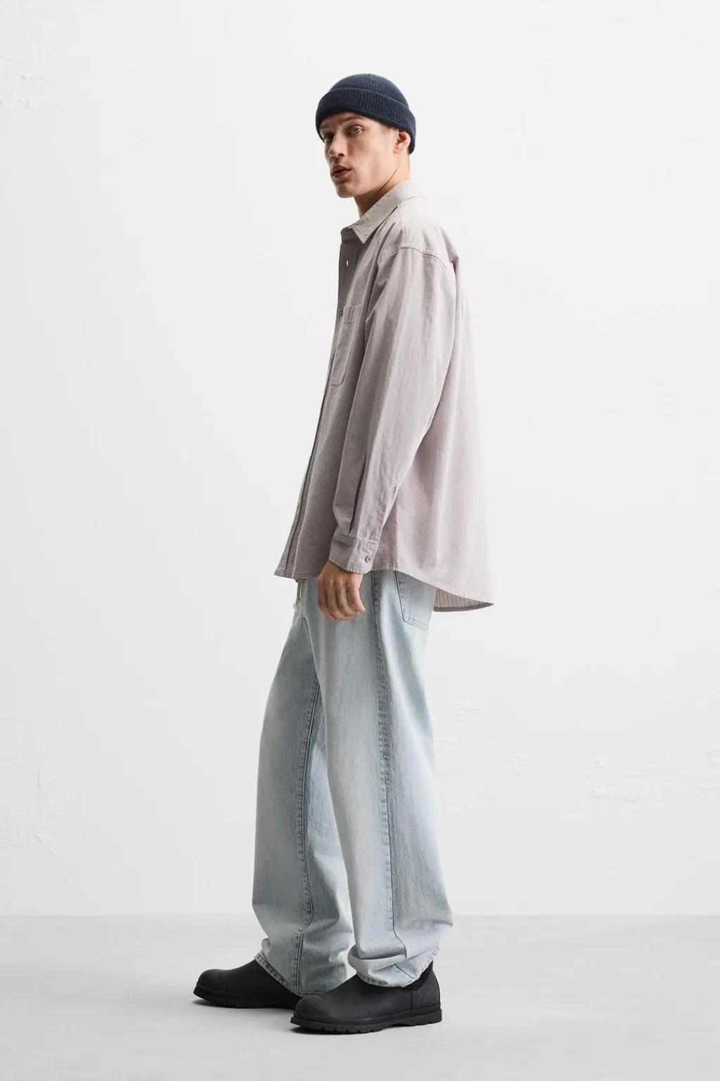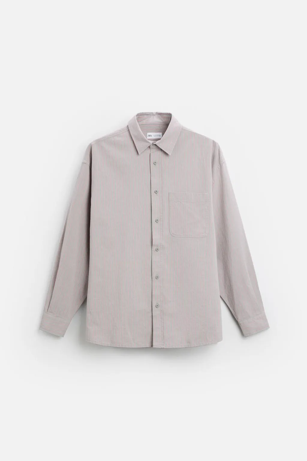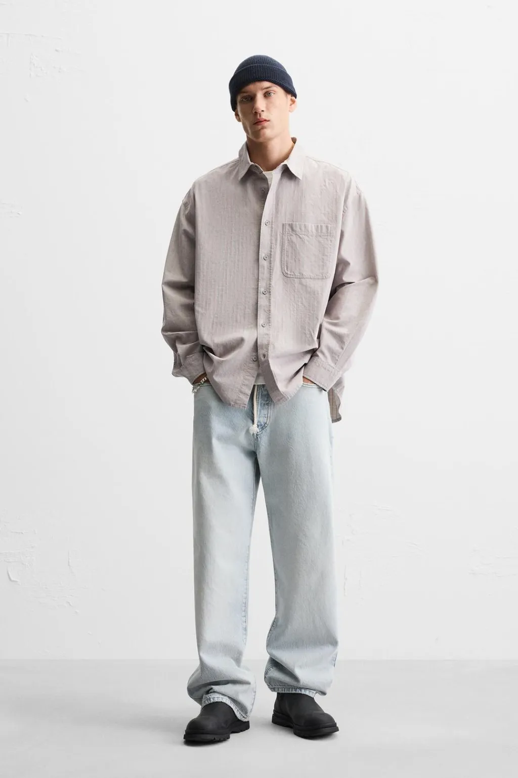 Camisa relaxed fit confeccionada en tejido de algodón. Cuello solapa y manga larga acabada en puño con botón. Bolsillo plastrón pecho. Cierre frontal de botonadura.