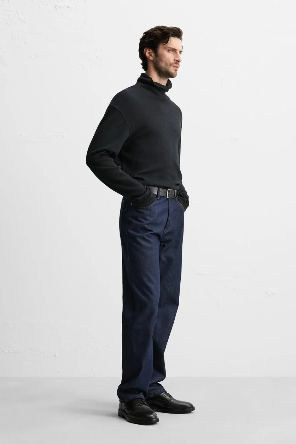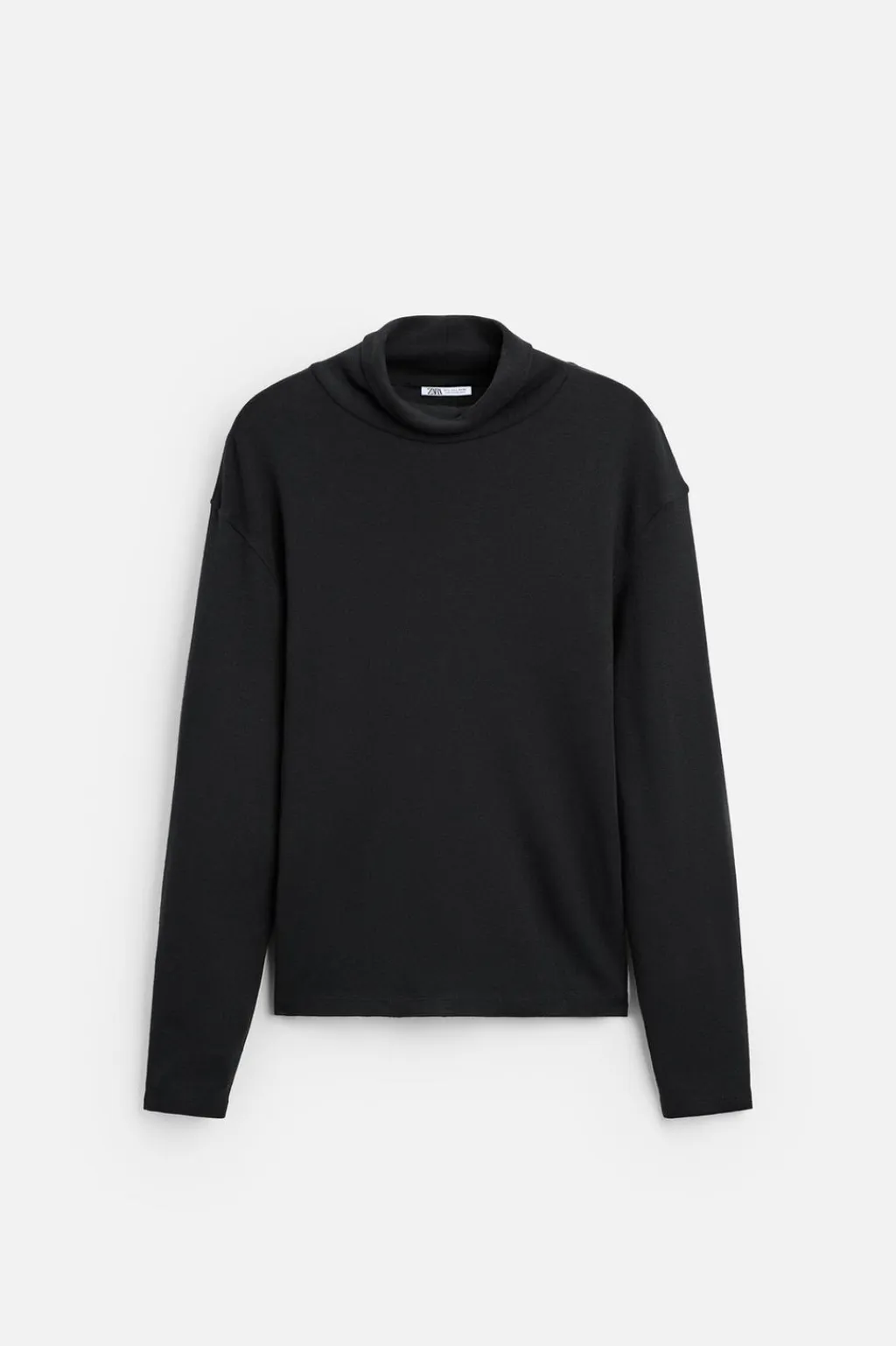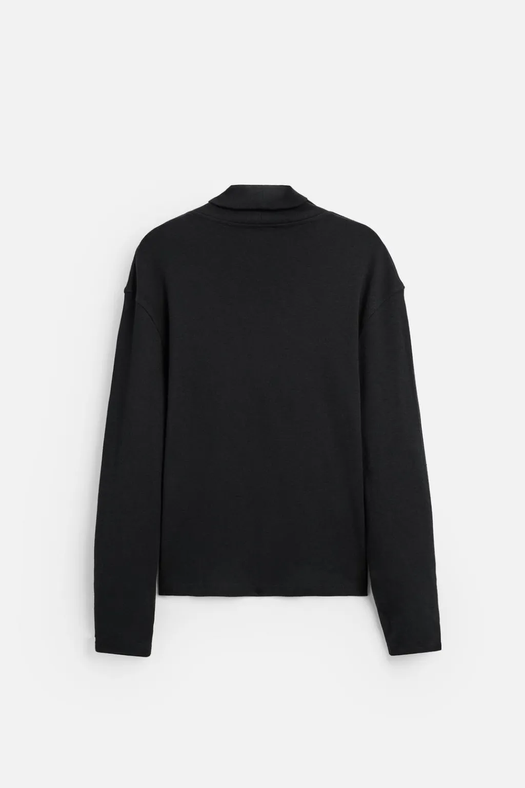 Camiseta relaxed fit confeccionada en tejido de algodón y lana. Cuello subido y manga larga.