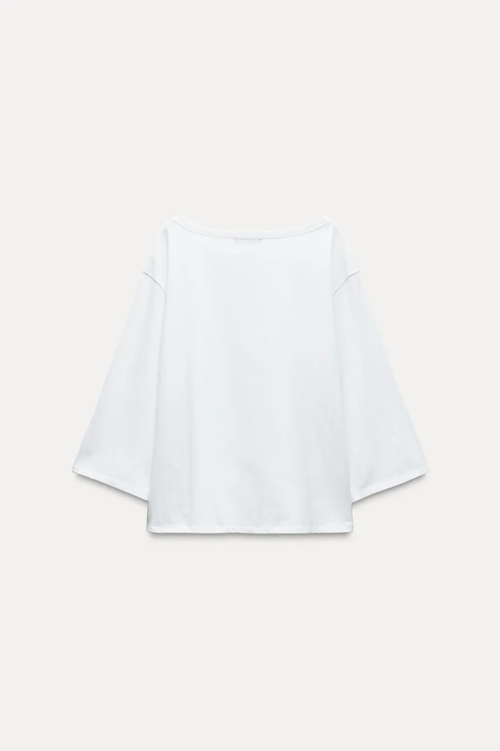Camiseta confeccionada en hilatura de algodón 100%. Cuello barco y manga tres cuartos.