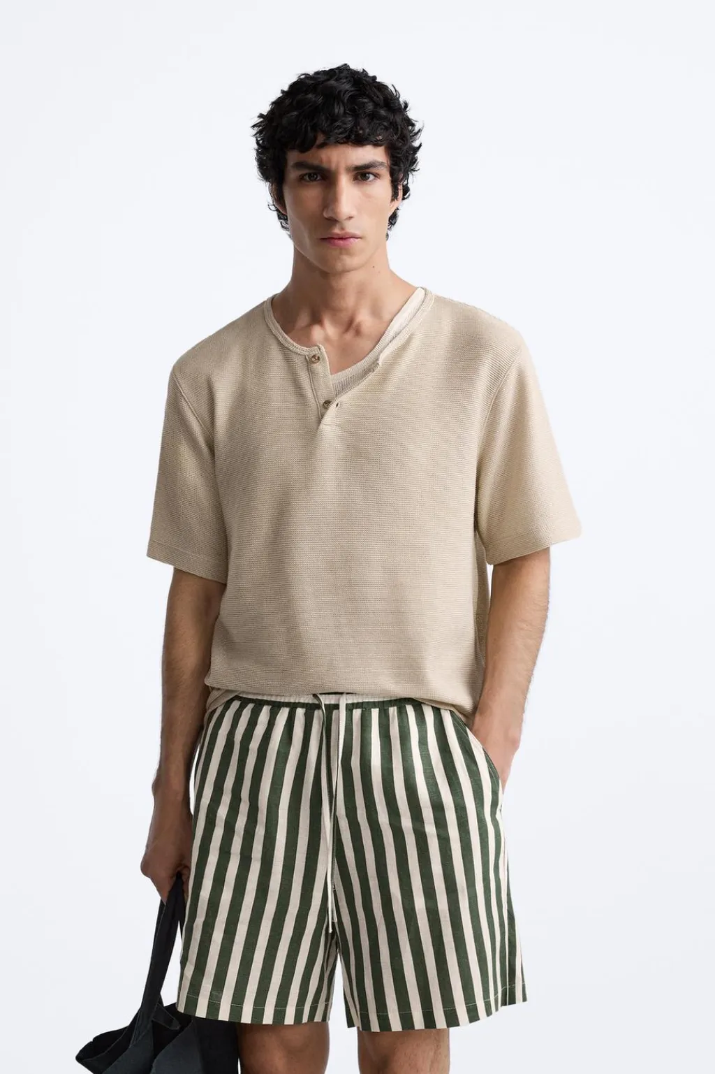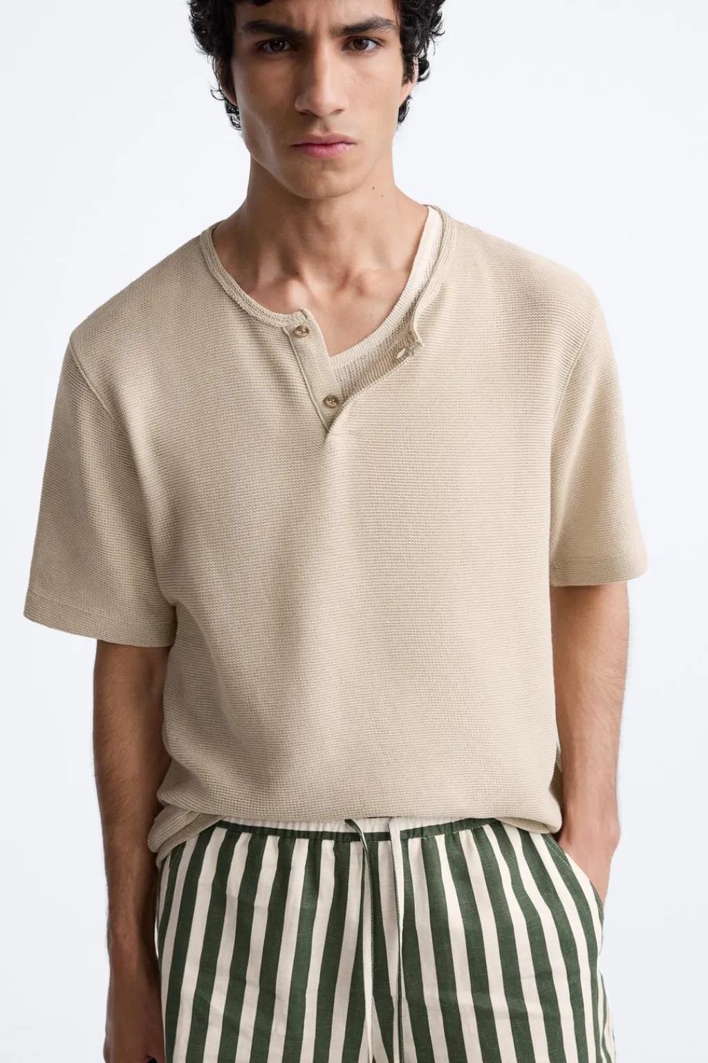 Camiseta relaxed fit. Cuello redondo con cierre frontal de botonadura. Manga corta.