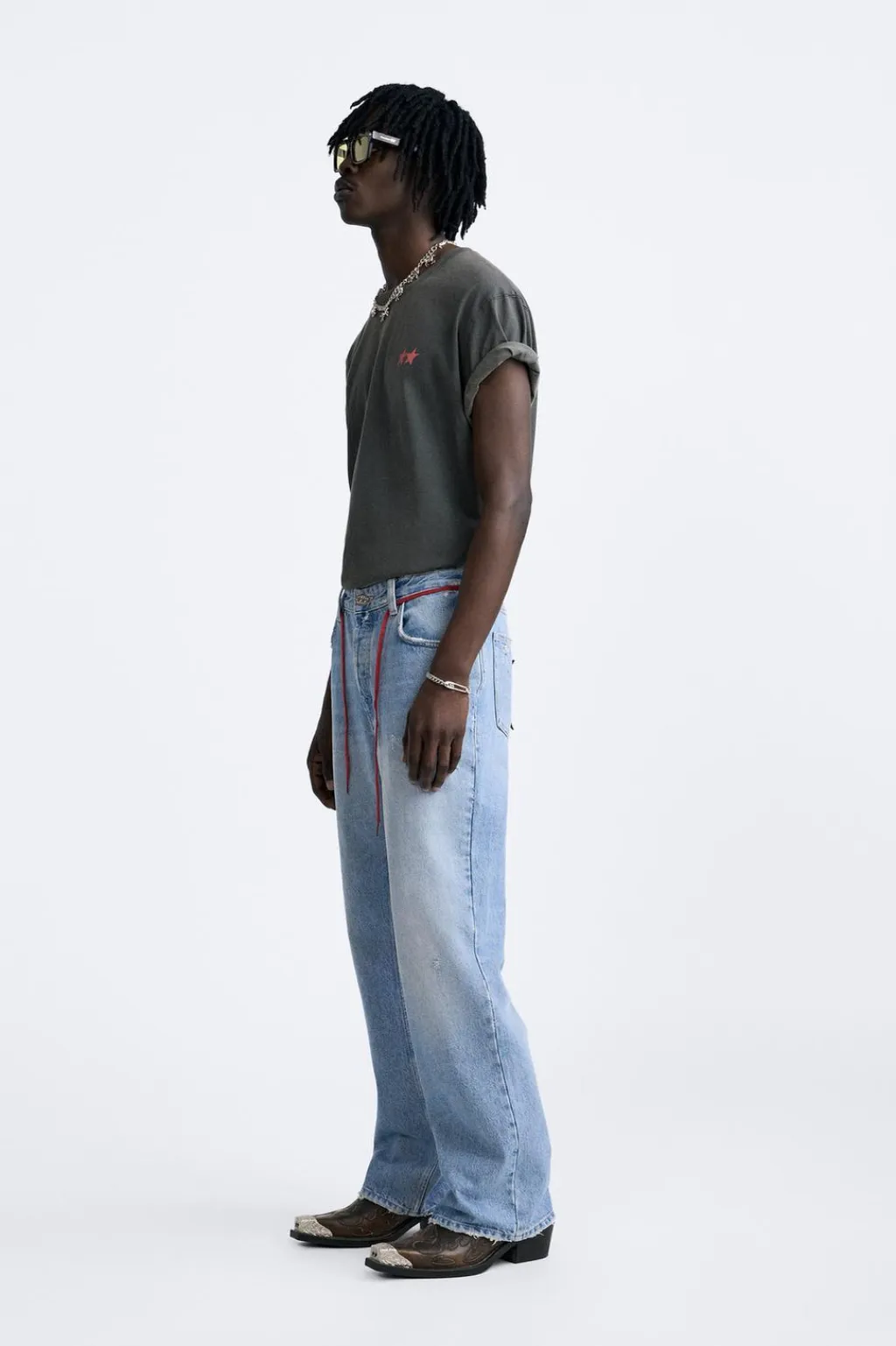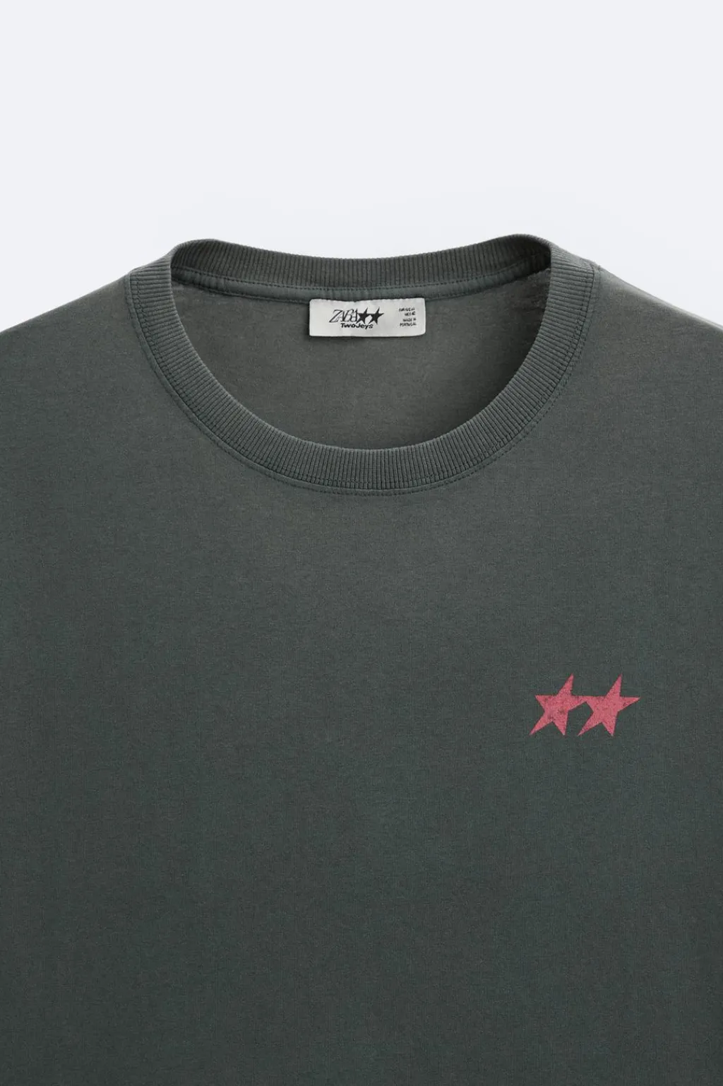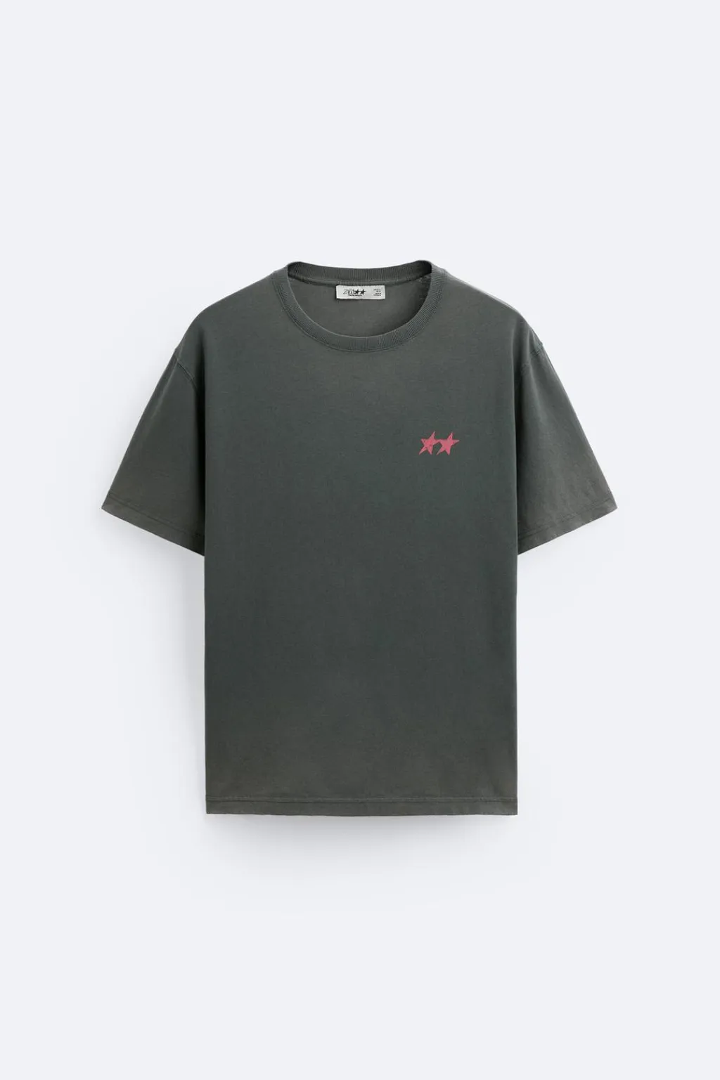 Camiseta regular fit. Cuello redondo y manga corta. Estampados efecto lavado combinados a contraste en delantero y espalda.