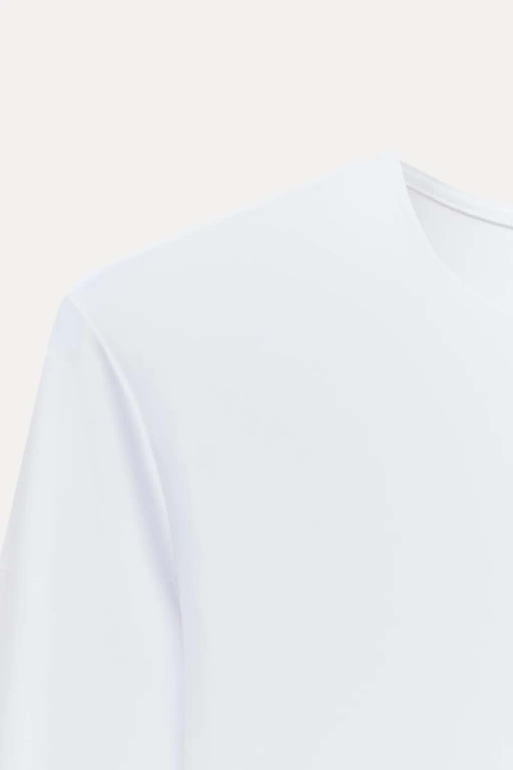 Camiseta confeccionada en poliamida de cuello redondo y manga larga.