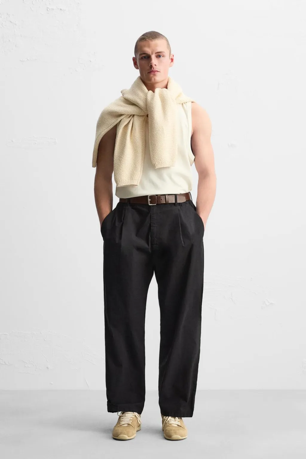 Camiseta slim fit. Cuello redondo amplio y manga sisa.