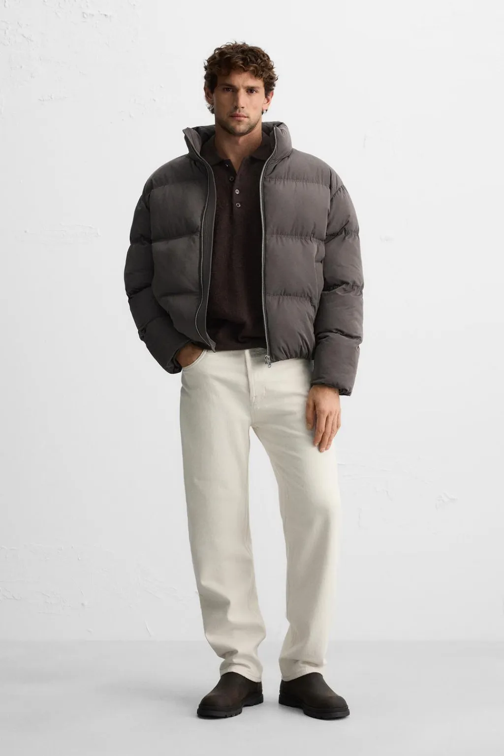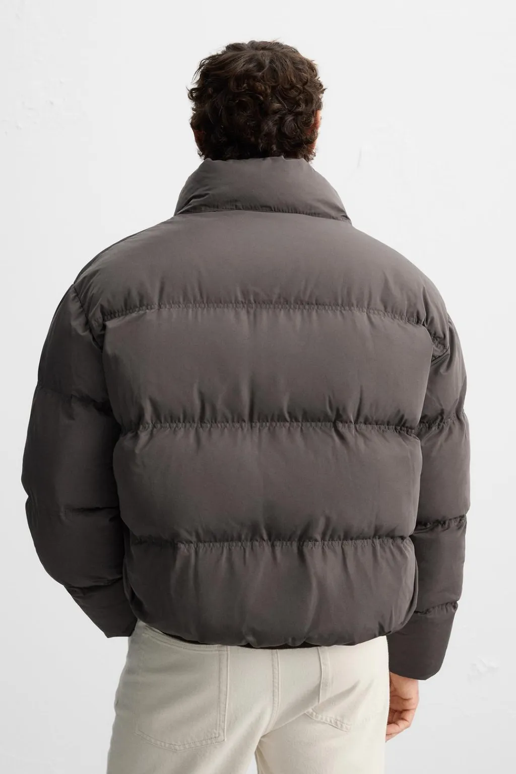Cazadora acolchada regular fit. Cuello subido y manga larga. Bolsillos de vivo en cadera y detalle de bolsillo interior. Acabados con elástico. Cierre frontal de cremallera.