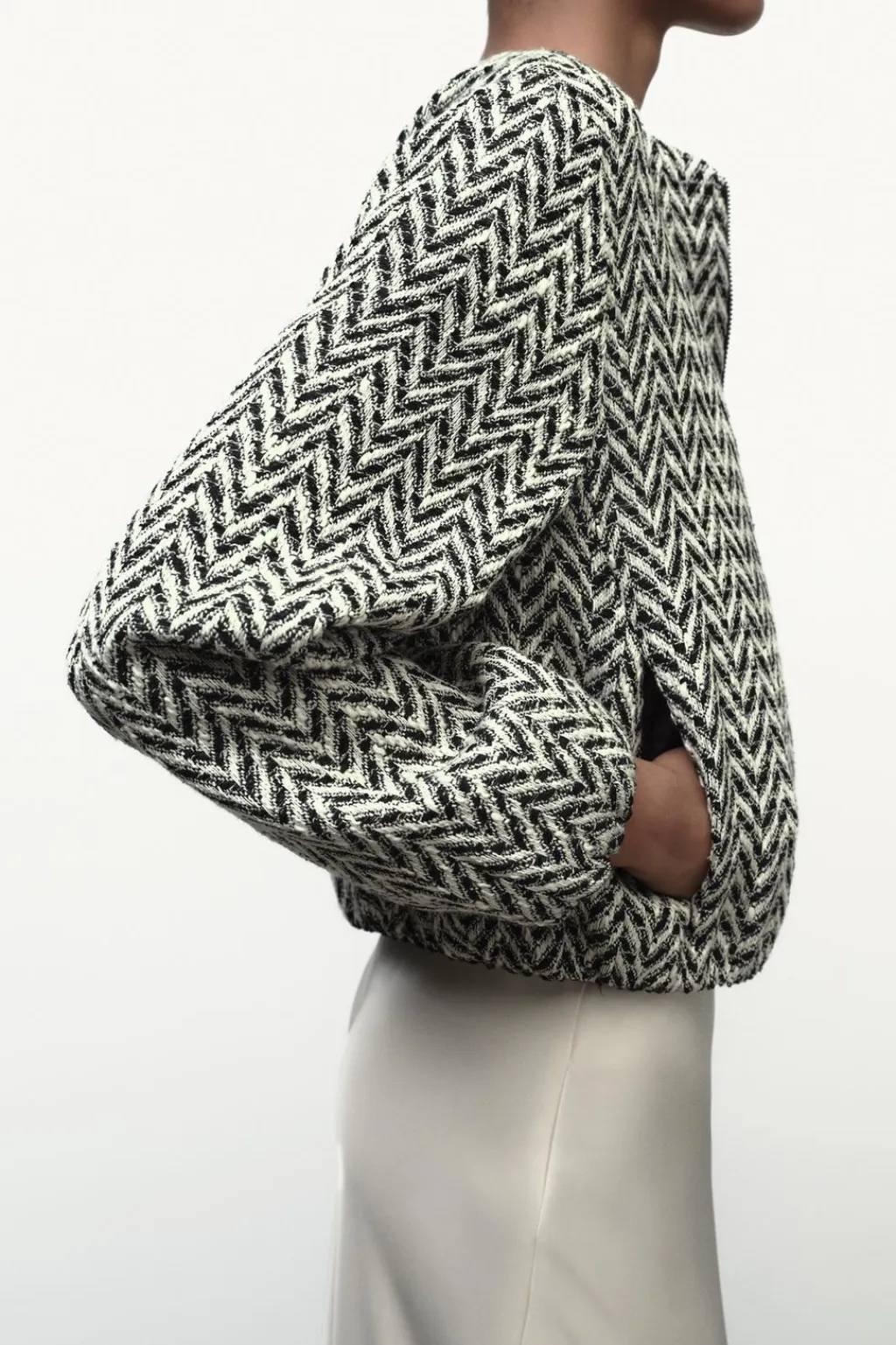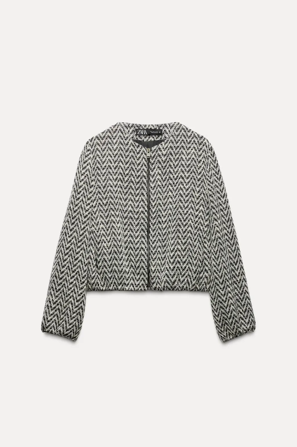 Chaqueta de cuello redondo y manga larga. Bolsillos delanteros. Acabados elásticos. Cierre frontal con cremallera.