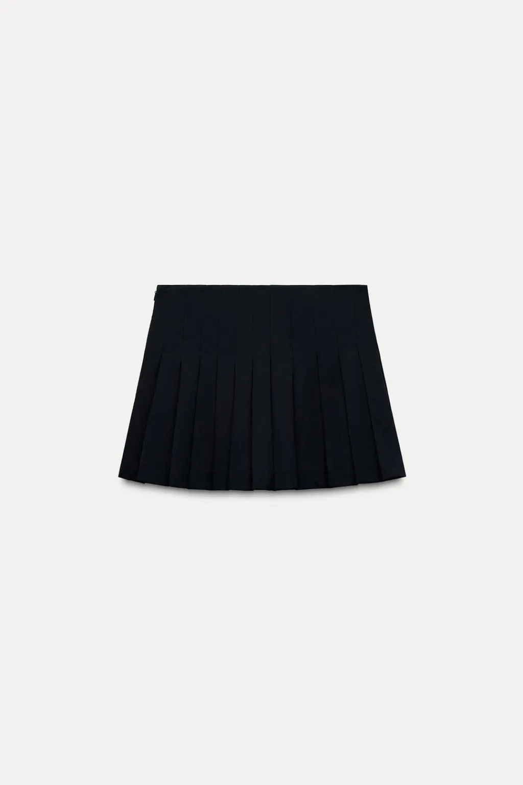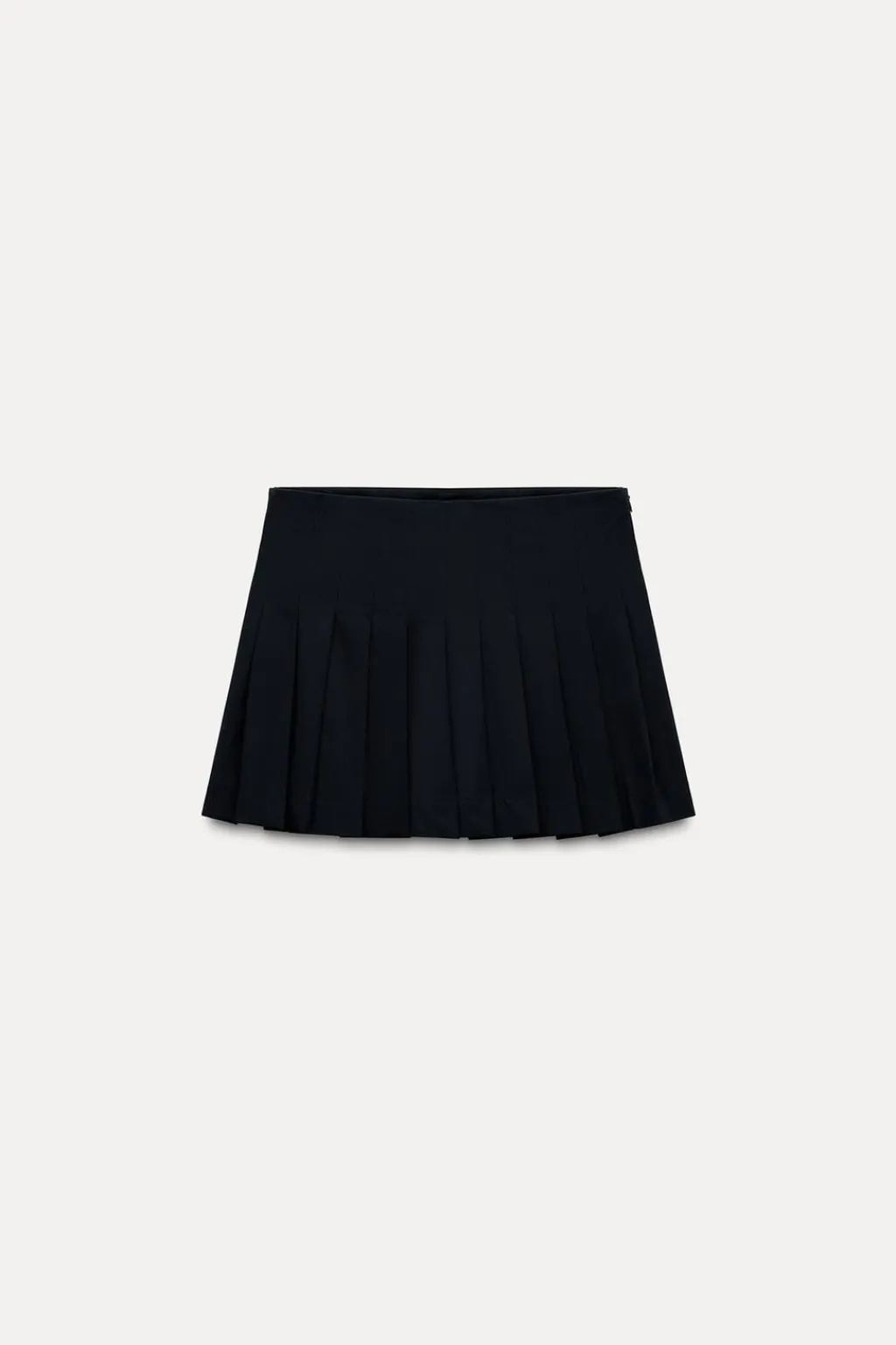 Falda pantalón de tiro medio. Bajo acabado en tablas. Cierre lateral con cremallera oculta en costura.
