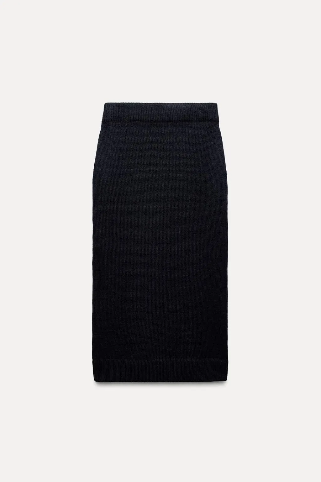 Falda midi de tiro alto con cintura elástica. Acabados en rib.