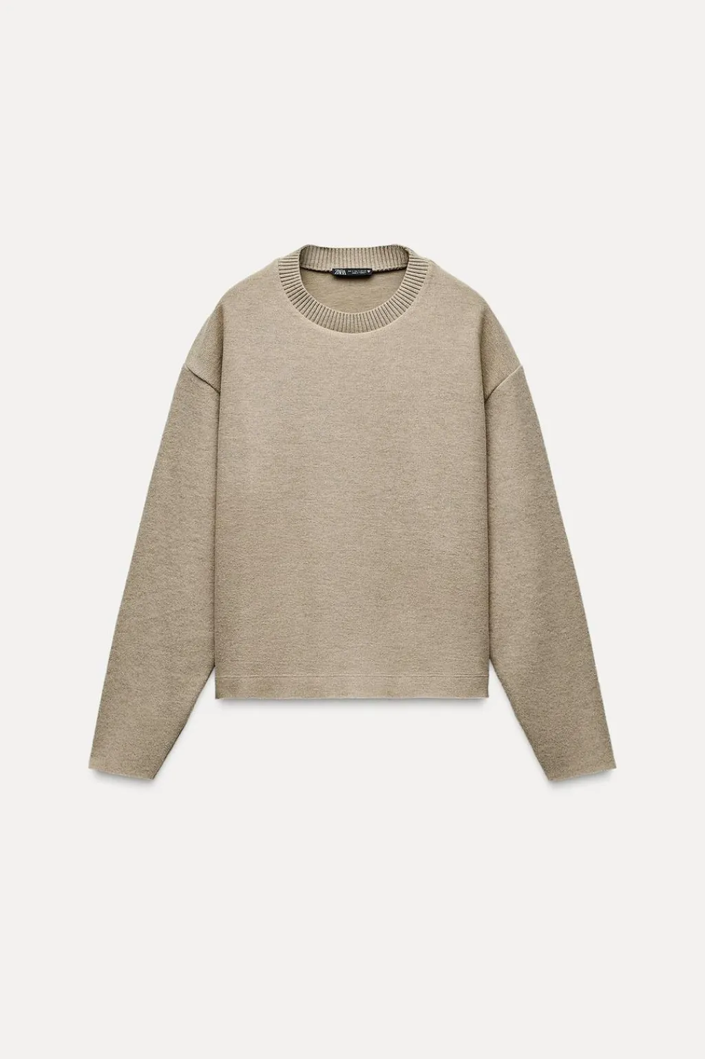 Jersey de cuello redondo combinado en rib. Manga larga acabada sin costuras.