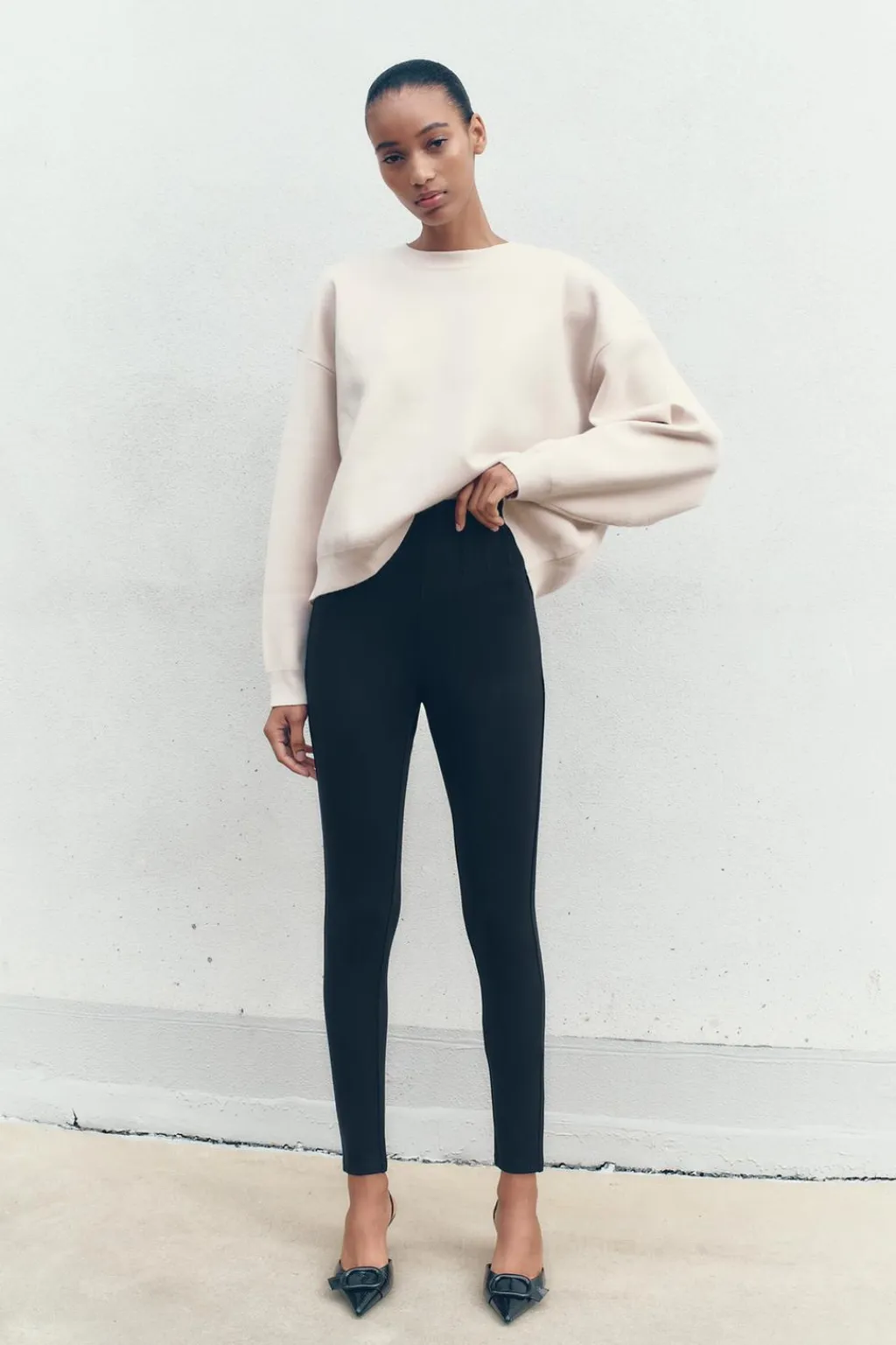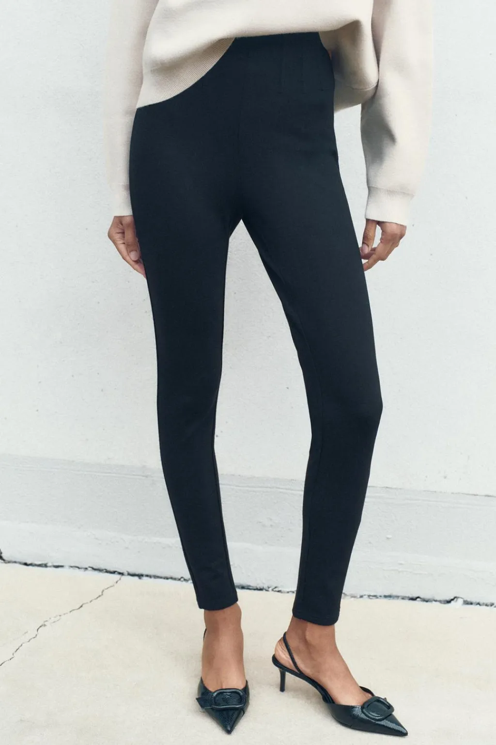 Leggings de tiro alto con efecto reductor que realza y estiliza la figura. Varillas interiores en cintura ocultas para un mayor efecto plano. Cierre lateral con cremallera oculta en costura.