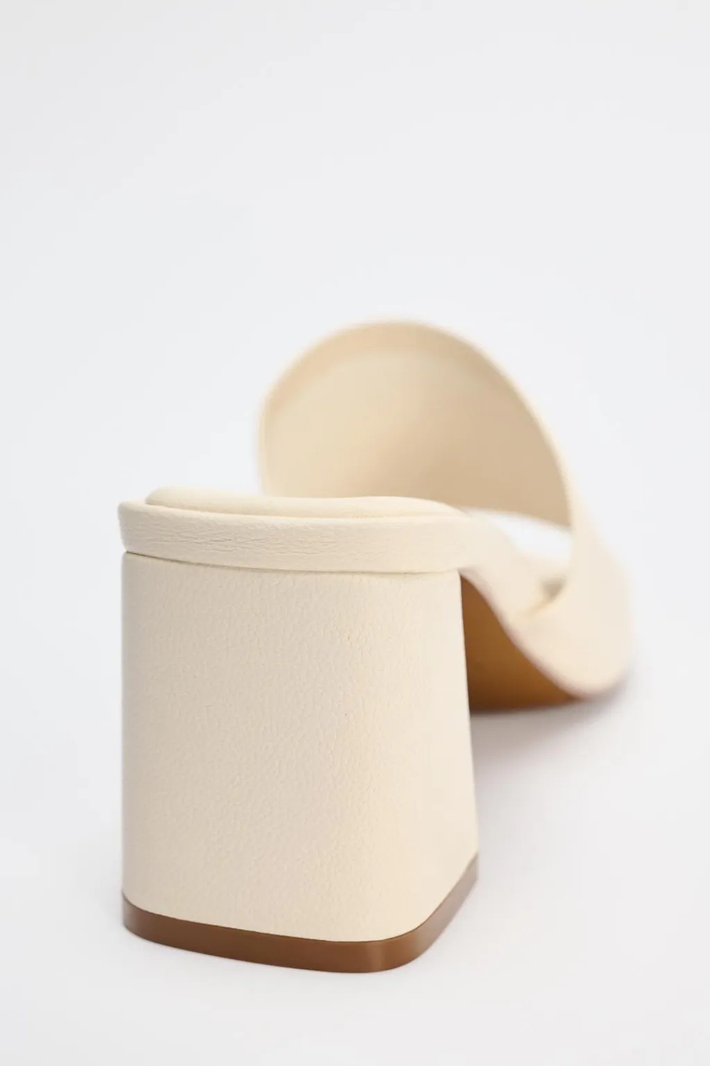 Zapato tacón tipo mule en piel. Tira ancha en la parte delantera. Tacón ancho. Acabado en punta cuadrada.