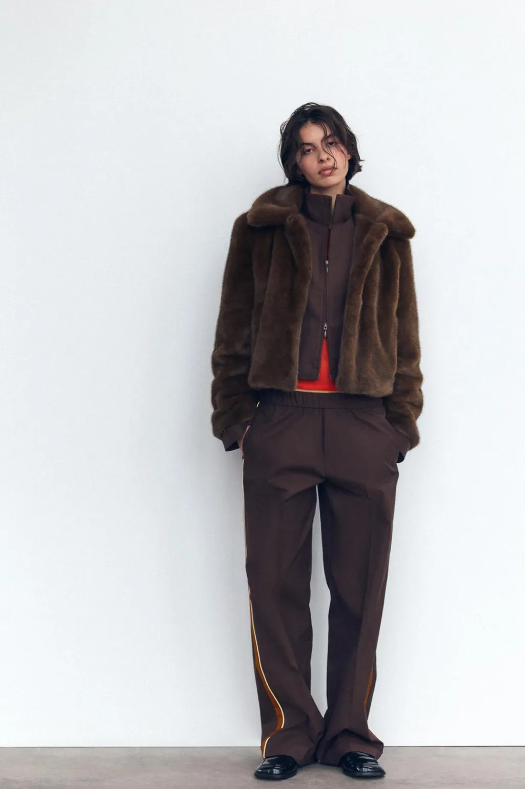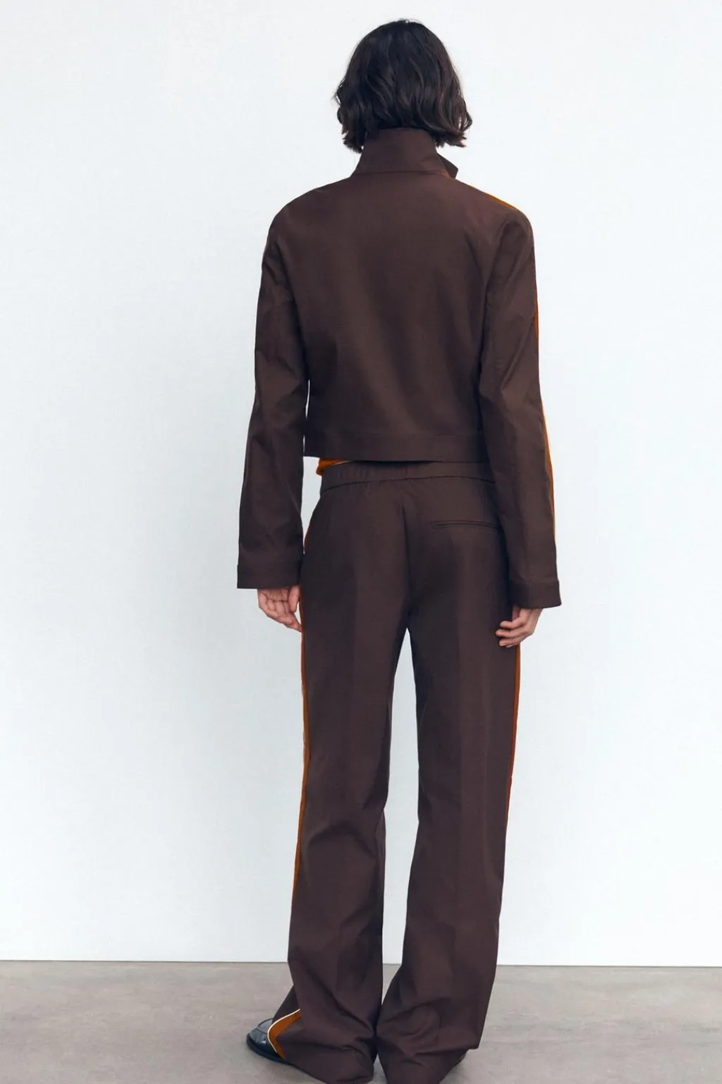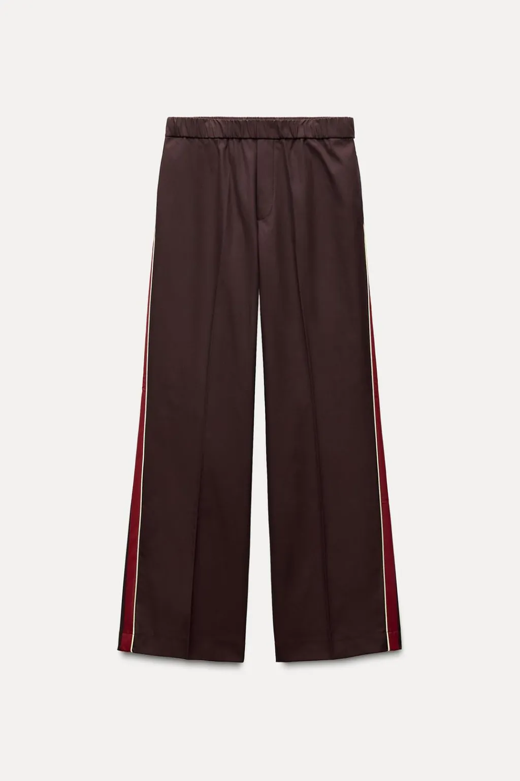 Pantalón de tiro medio con cintura elástica. Bolsillos laterales y de vivo en espalda. Detalle de banda lateral con vivo a contraste.