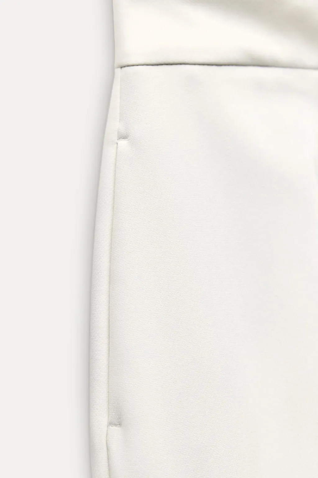 Pantalón de tiro alto con bolsillos delanteros y falsos bolsillos de vivo en espalda. Pernera ancha y corta. Cierre frontal con cremallera, botón interior y gancho.