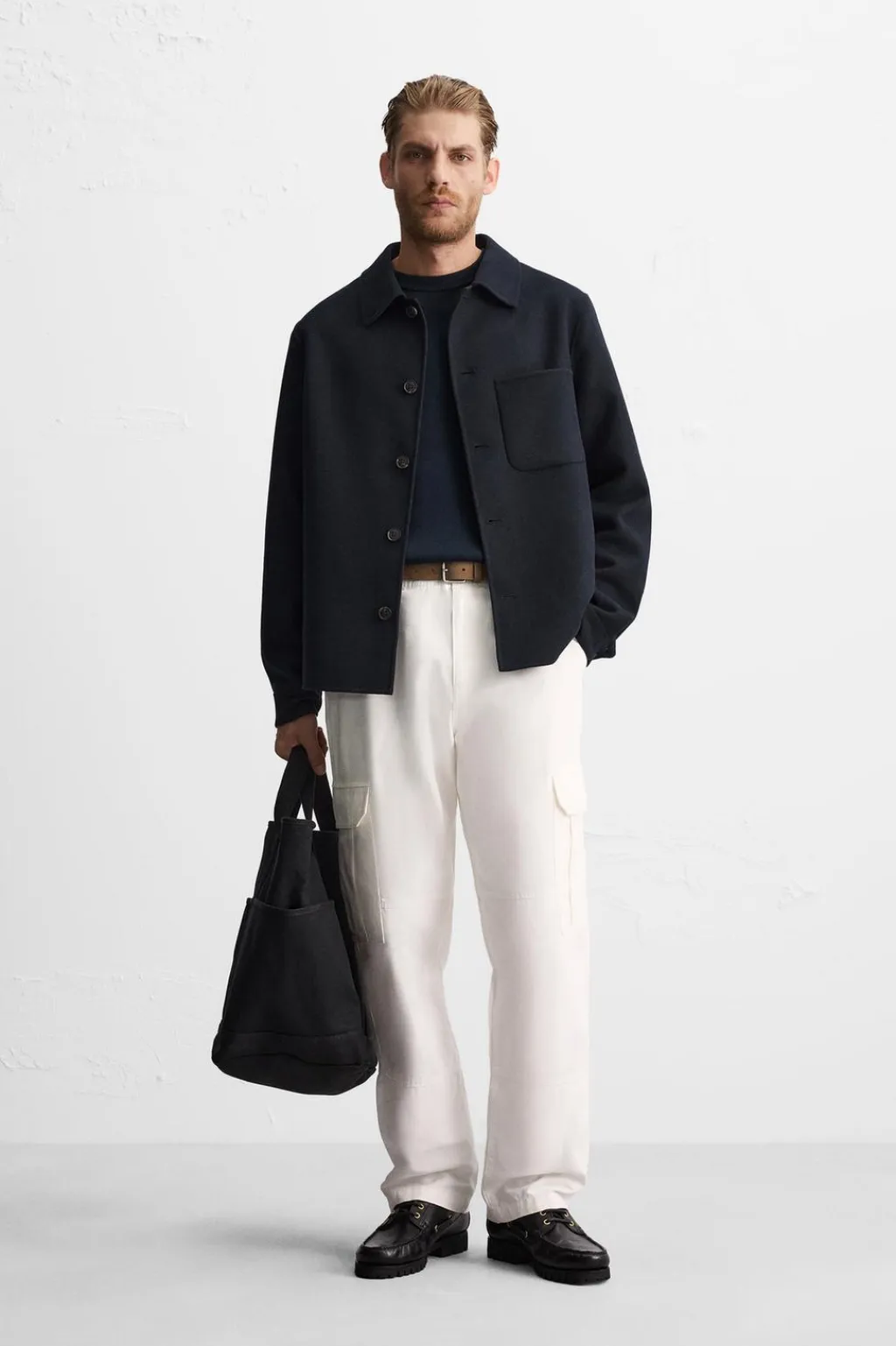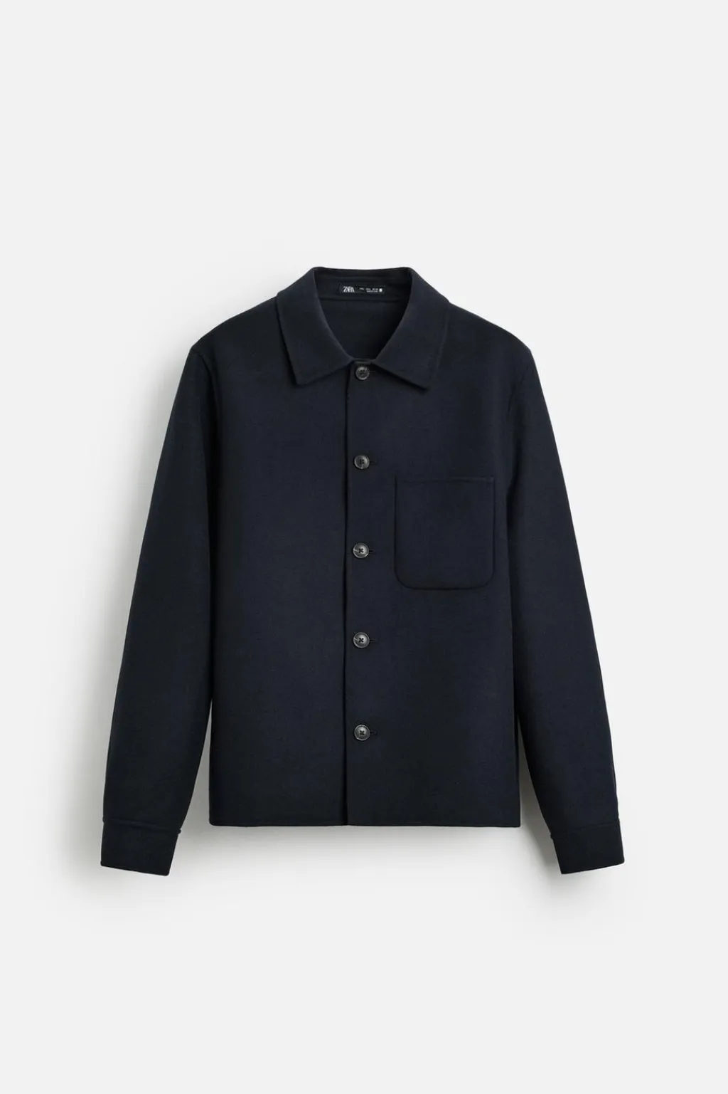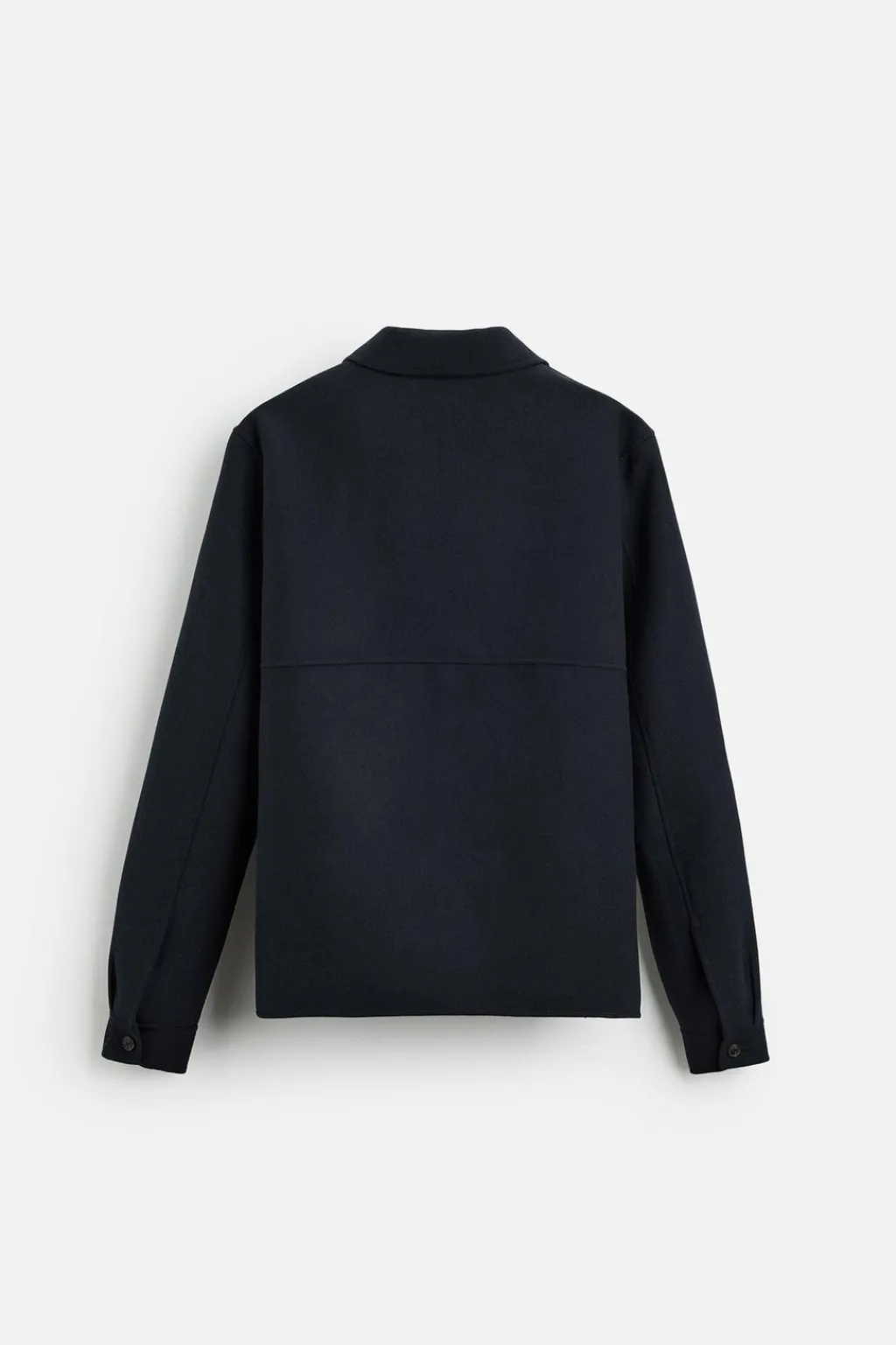 Sobrecamisa relaxed fit confeccionado en tejido con lana. Cuello solapa y manga larga acabada en puño con botón. Bolsillo plastrón en pecho y detalle de bolsillos laterales en cadera. Cierre frontal de botonadura.