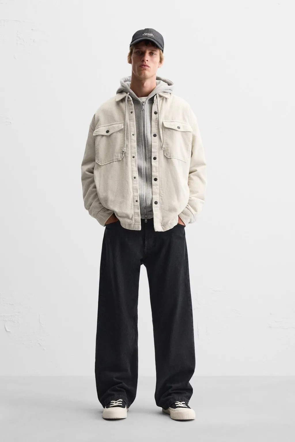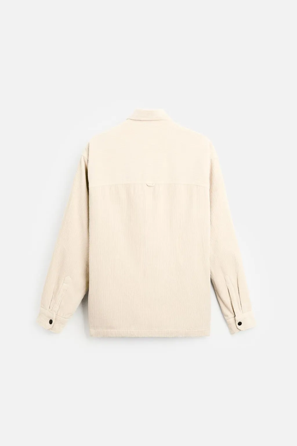Sobrecamisa relaxed fit confeccionada en tejido de pana ligeramente acolchada en su interior. Cuello solapa y manga larga acabada en puño con botón. Bolsillos de plastrón con solapa en pecho y de vivo en cadera. Cierre frontal de botonadura.