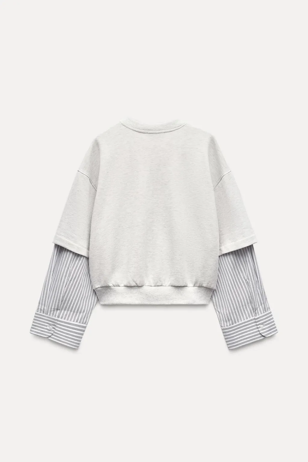 Sudadera de cuello redondo. Manga larga combinada acabada en puño. Acabados en rib.