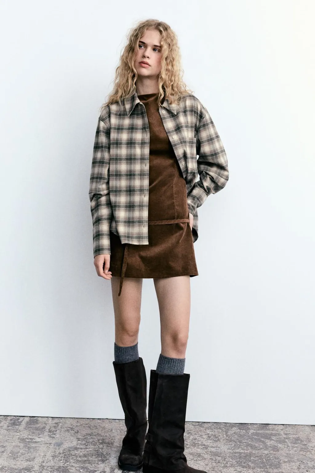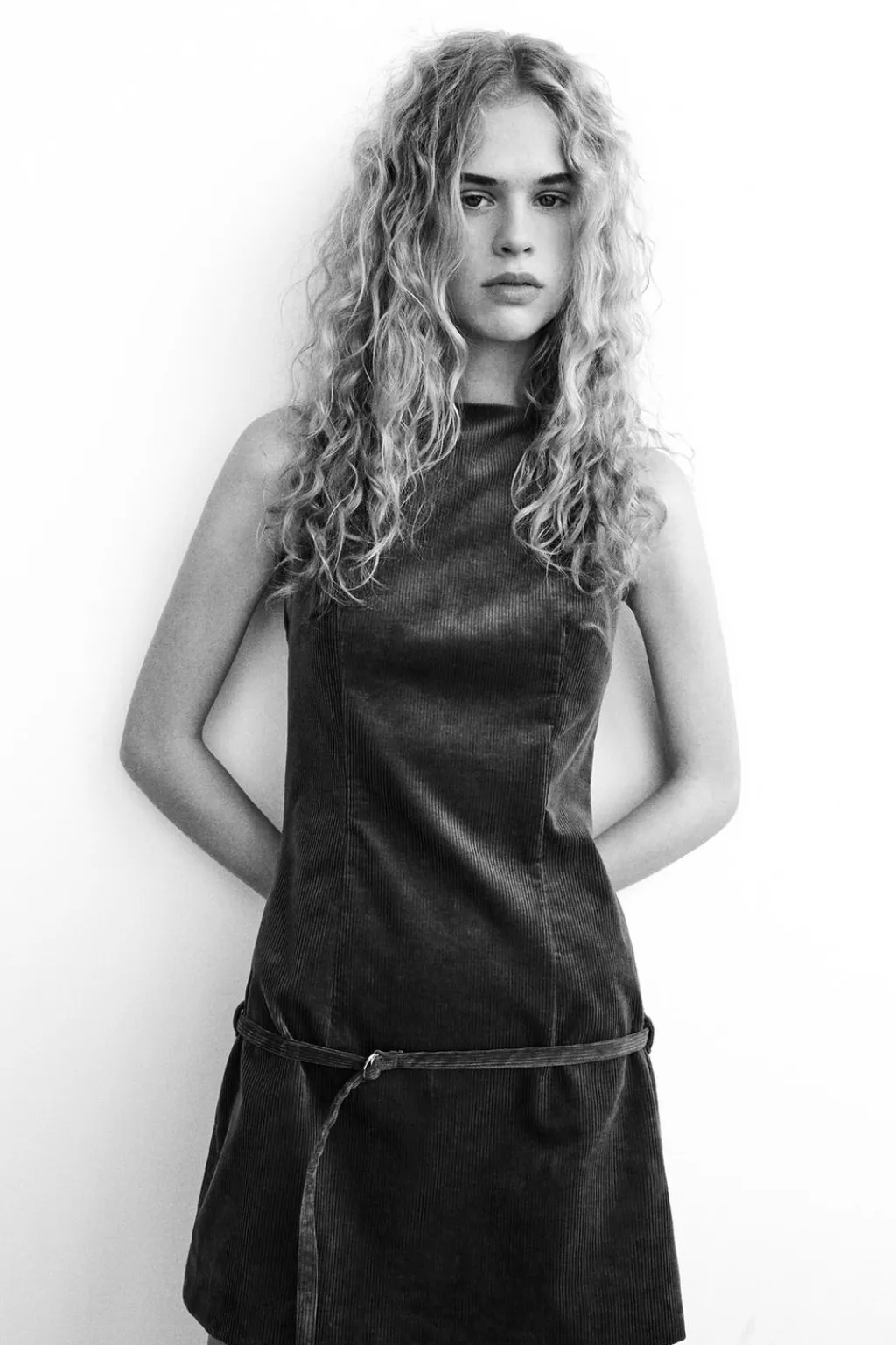 Vestido corto de cuello barco y manga sisa. Cinturón en mismo tejido ajustable con hebilla metálica. Forro interior combinado a tono. Cierre en espalda con cremallera oculta en costura.