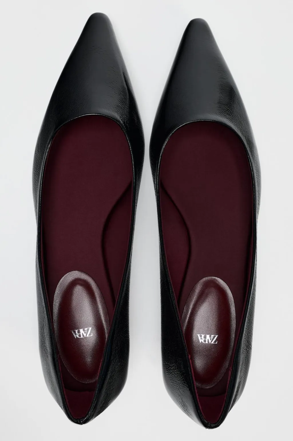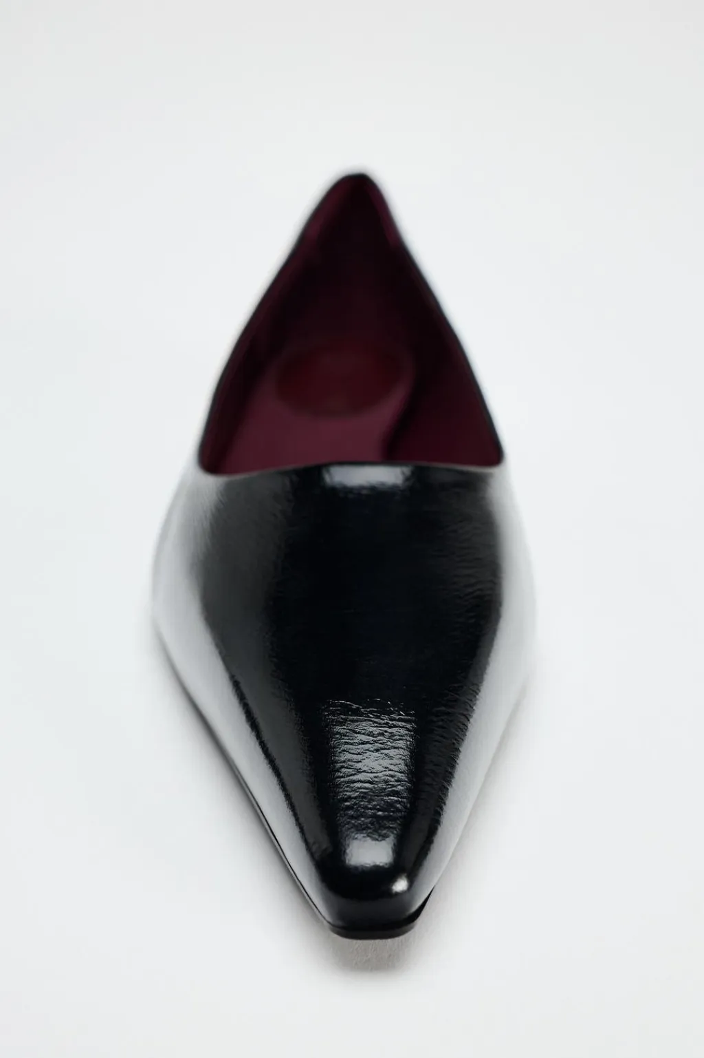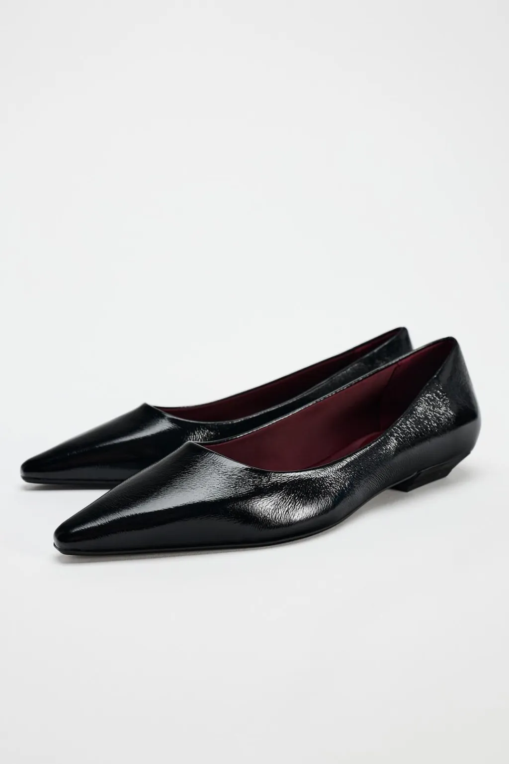 Zapato plano efecto acharolado. Acabado en punta.