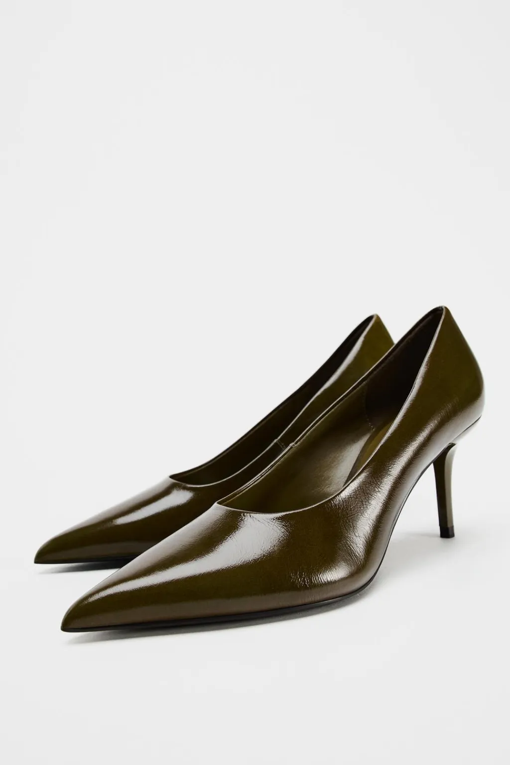 Zapato tacón fino en piel. Escote redondo. Acabado en punta.