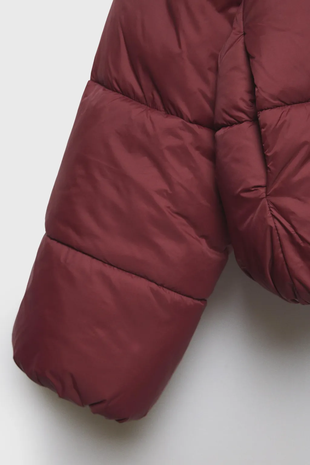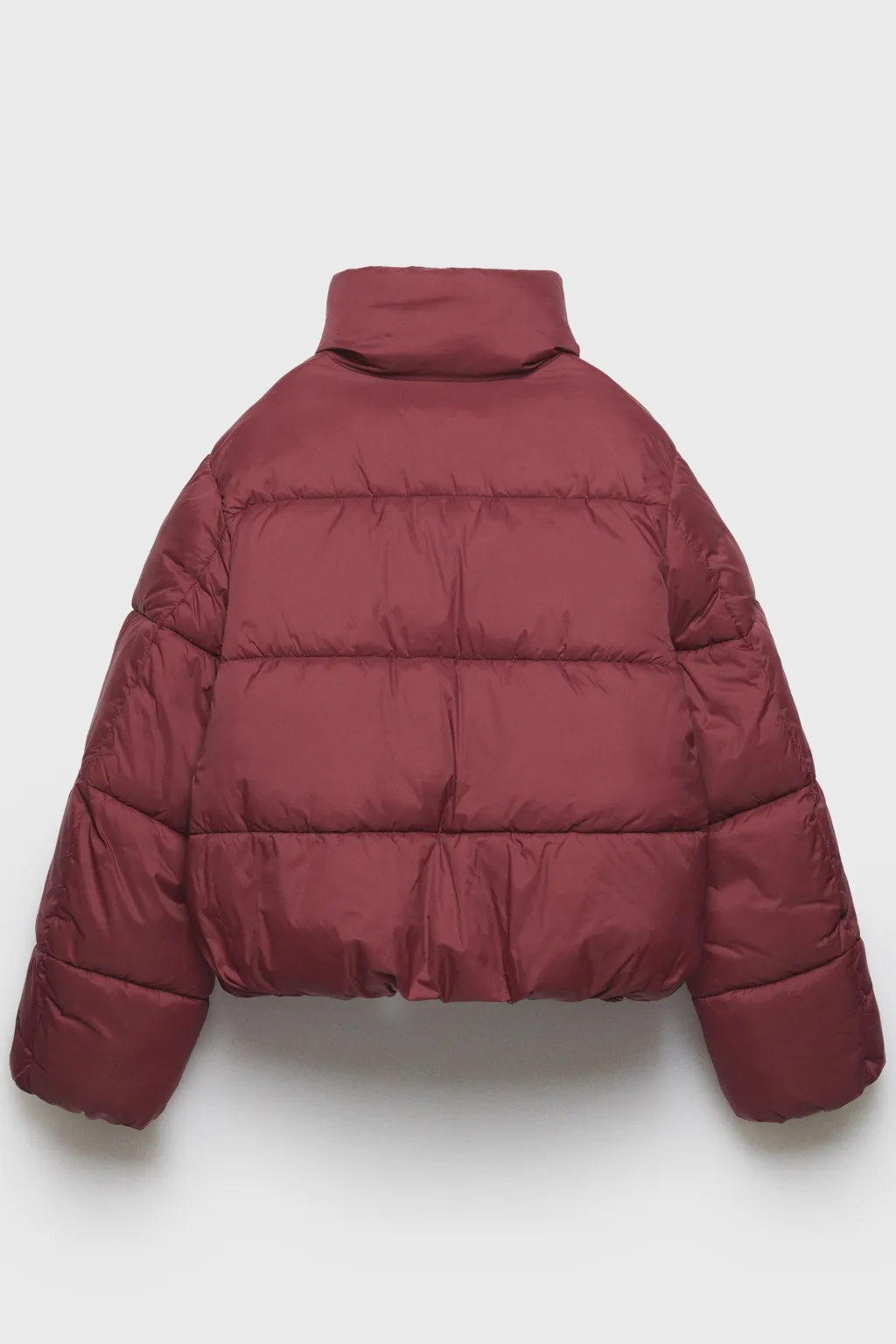 Cazadora acolchada con cuello subido y manga larga acabada en goma. Cierre cremallera frontal y botones de tipo presión ocultos por solapa.